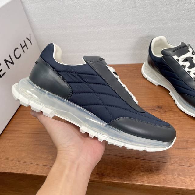 Givenchy's new men's patchwork air-cushioned platform sneakers. These shoes feature an imported soft Nappa calfskin upper with breathable nylon fabric. The tongue and heel are embellished with a three-dimensional brand logo. They feature a fully supported, transparent air-cushioned rubber midsole and a rubber outsole for comfort and shock absorption. Soft cowhide lining and logoed cowhide footbeds create a comfortable, breathable, and all-season design. Available in sizes 39-40-41-42-43-44. Standard leather shoe sizes 38-45 are available. Customization is permitted. No returns or exchanges. Item number: Sl2306 Leather and Cloth.