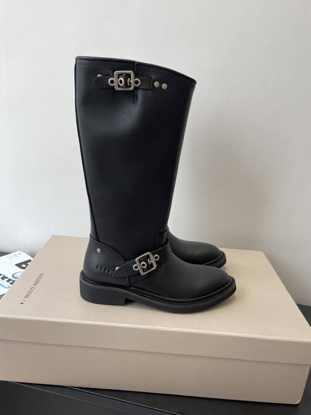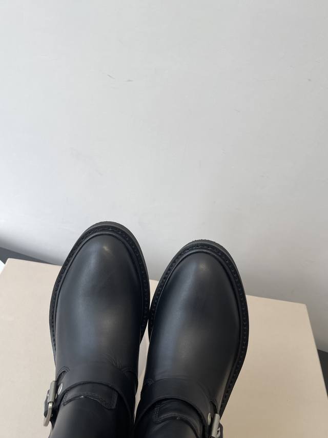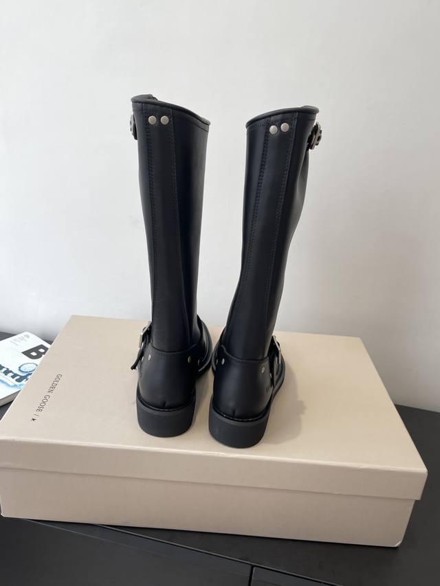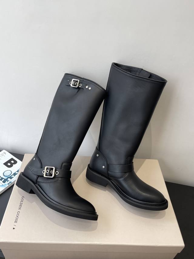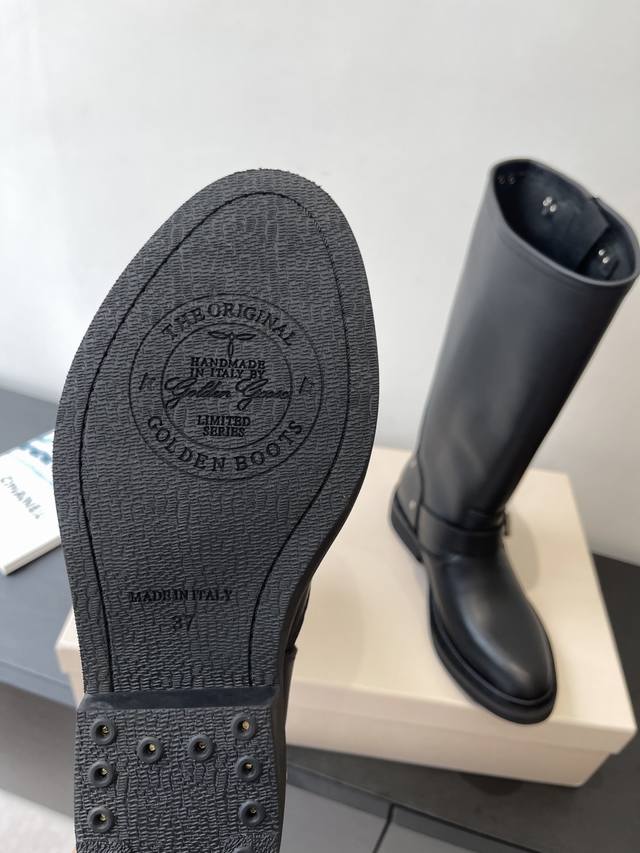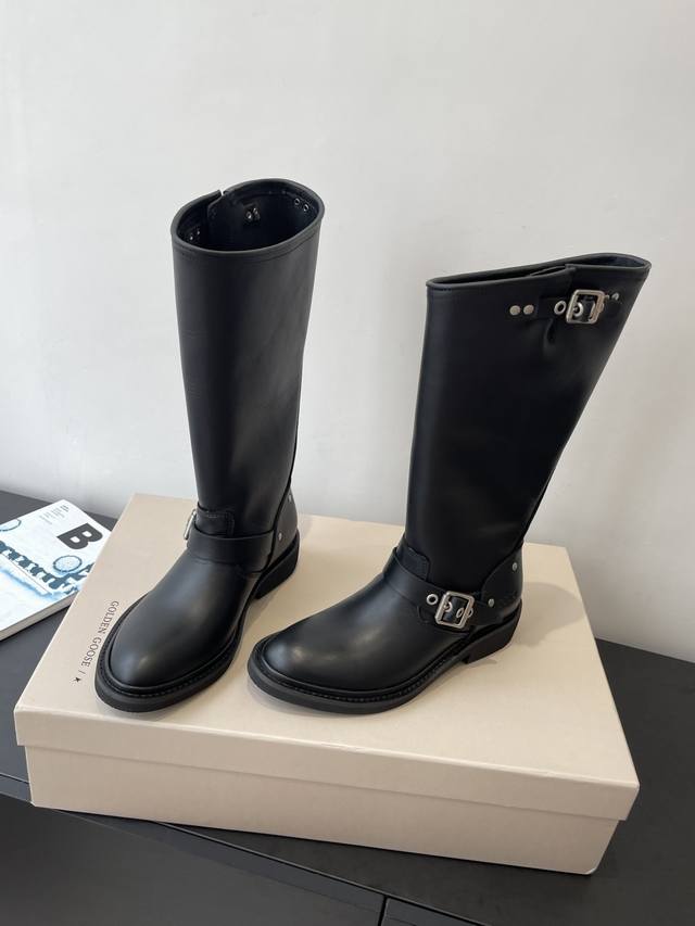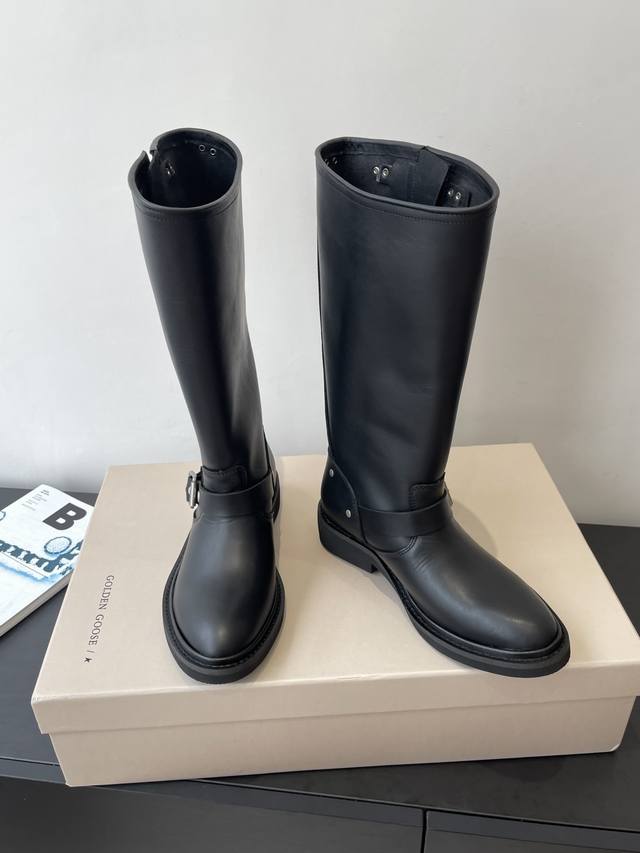 Ggdb Golden Goose 25Ss Autumn/Winter New Retro Tall Rider Boots DDD Made of high-quality genuine leather, with a delicate texture and durability, showcasing a good luster. These tall riding boots feature metal buckle elements that add a retro and cool style. The shoe shape is sleek, and the boot height is moderate, providing a good shaping effect for the leg lines. DDD Pair them with a black leather jacket, black skinny jeans, and metallic accessories to create a cool biker look. The dark brown version can be paired with a plaid suit and high-waisted straight-leg jeans to create a retro-modern atmosphere. DDD Imported top-layer calfskin upper DDD Cowhide lining DDD Original mold rubber sole + genuine leather welt combination outsole DDD Sizes: 35-40 Size 40 is custom-made and non-refundable. DDD