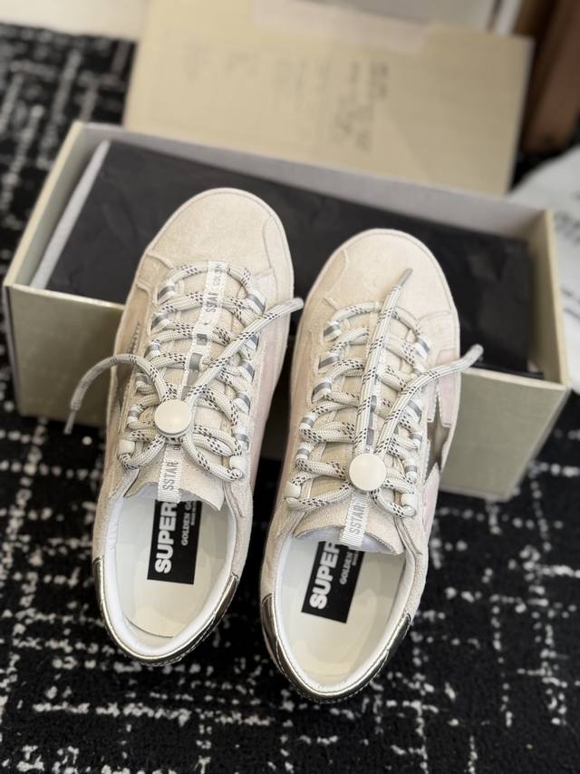 Retail-grade Golden Goose Star Sneakers/Casual Shoes (DDD) Continuing the brand's signature distressed sneaker style, these shoes combine a retro low-top design with a simple and clean silhouette. The classic star logo on the side is the core of the brand's recognizability, while the addition of outdoor-style chunky laces adds a touch of sophistication. Available in soft milk tea and off-white tones, the low-saturation color scheme makes them versatile. The laces feature a chunky textured outdoor-style drawstring, and the simple logos on the tongue and upper maintain the brand's minimalist yet retro aesthetic. The snug fit enhances comfort. Upper: Cowhide suede; Lining: Sheepskin; Outsole: Rubber; Heel Height: 2.5cm; Sizes: 35-41 (Sizes 40 and 41 are custom-made and non-refundable).