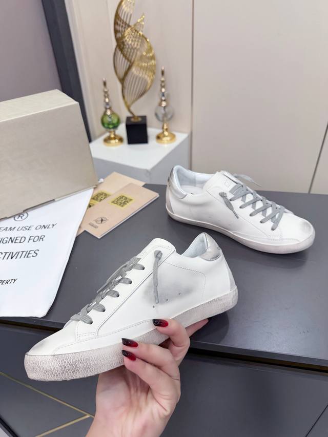 Real Price: The most classic star-patterned distressed sneakers by Golden Goose (Ggdb) are versatile casual shoes with a two-tone sole. Pursuing "perfect imperfection," these shoes feature the brand's iconic Lived-In design, distressed finish, and unique star elements. They are a perfect combination of Italian craftsmanship and classic aesthetics. Not only are they comfortable and highly recognizable, they express a genuine and free attitude. They don't strive for pristine perfection; their casual and unrestrained style is more comfortable and relaxed! Material: Imported top-grain cowhide. Lining: Sheepskin and terry cloth lining. Outsole: 1:1 molded TPU outsole. Insole: 3.5cm hidden heel lift with active latex cowhide insole. Sizes: Women's 35-40; Men's 39-46.