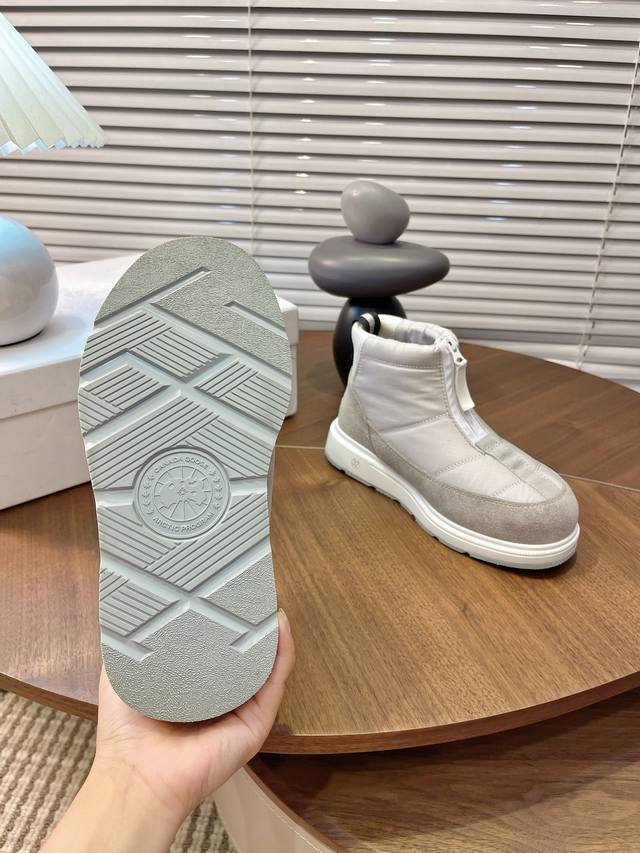 Real Price: Zhang Jingyi's same style Canada Goose winter thickened waterproof non-slip warm snow boots. These are the hottest autumn/winter choice for warmth. The down-filled upper is waterproof, windproof, and warm, while the wool lining is comfortable and breathable. It's the perfect season now, so grab them while you can! In winter, when you're running and jumping around, the most important thing is a lightweight sole! These are super lightweight, with maximum comfort. They truly feel like walking on clouds and are of reliable quality. You don't need many choices when buying shoes! Just get the best value for money. These are perfect for winter snow. Outsole: Cold-resistant PU and rubber combination non-slip outsole. Sizes 35-40.