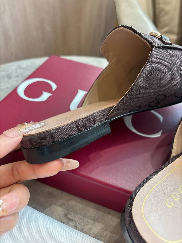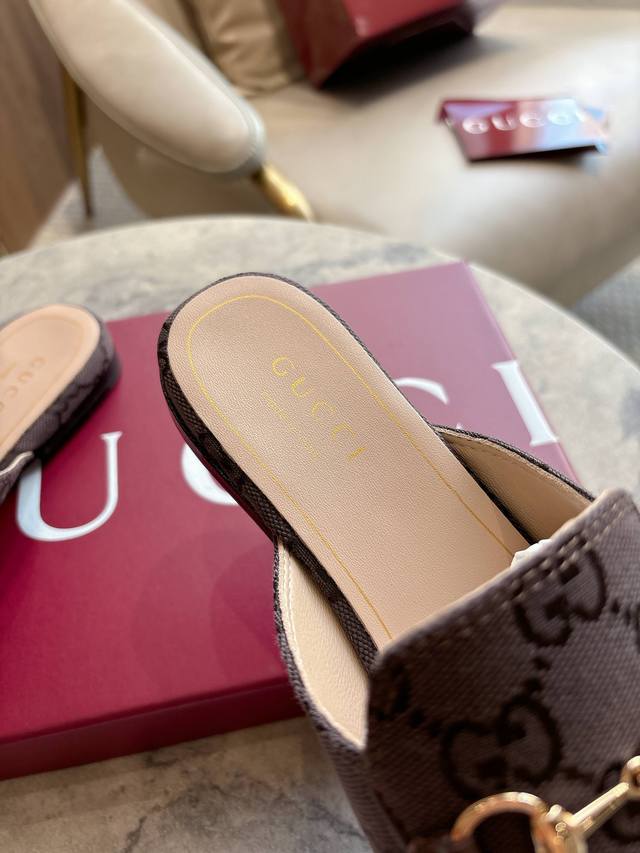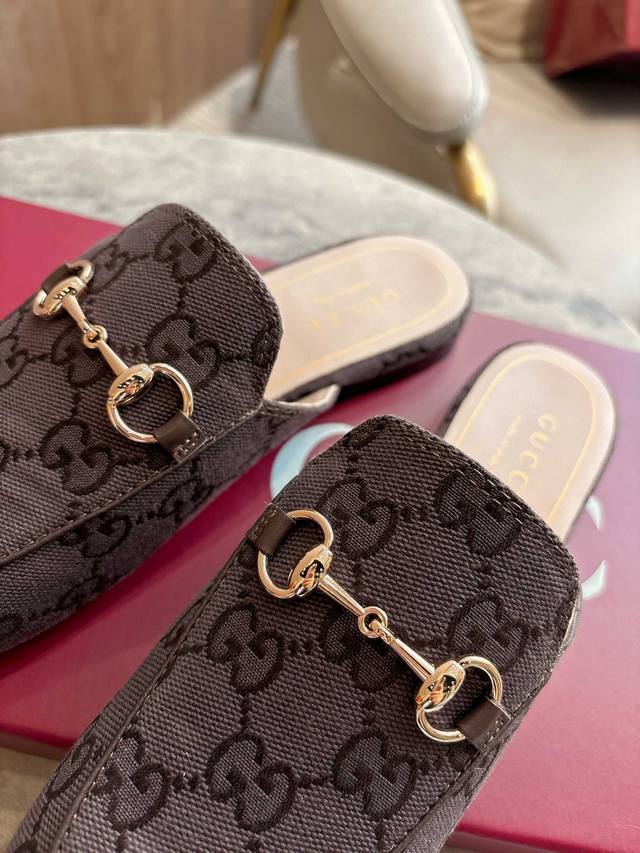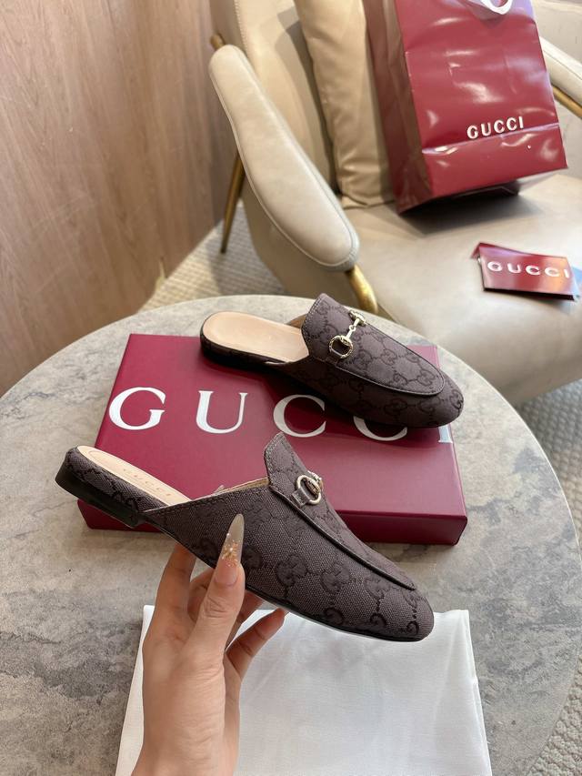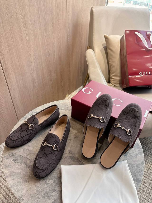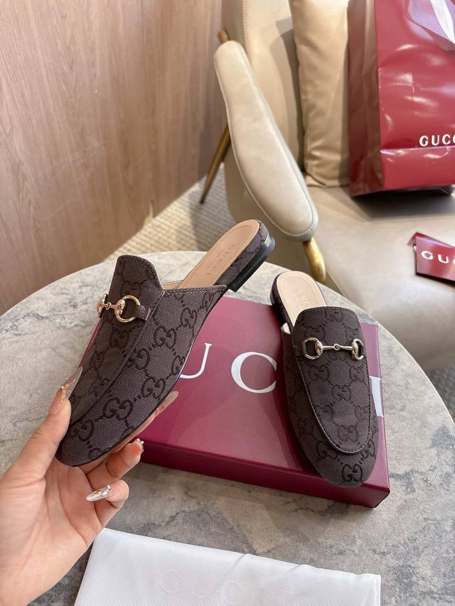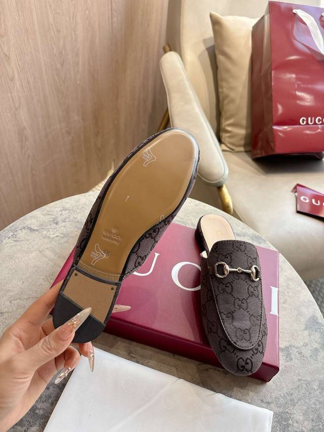 1803-1 Brown G 35-41 Since its inception, the slipper has been a signature product of the Gucci collection. This women's loafer features brown Gg canvas and slipper design elements, offering a bright and refreshing twist on a classic color scheme. Brown Gg Canvas Sizes: 35-42, 40-42 (Custom Made) Sole Material: Imported Italian Genuine Leather Packaging: Brand New Red Box