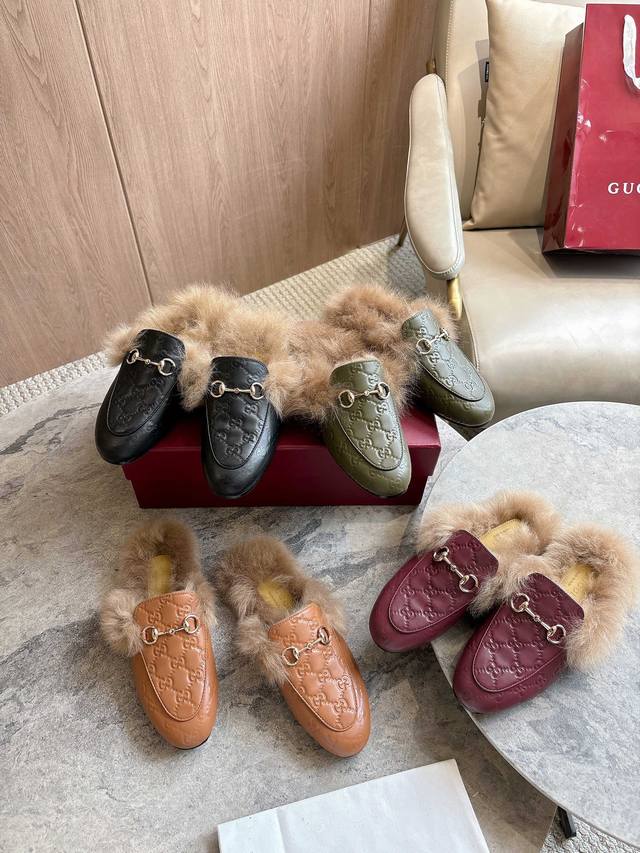1803-2* Burgundy ?35-42 As an outstanding representative of Gucci's design heritage, the Jordaan series horsebit loafers vividly embody classic elegance. These shoes are crafted from calfskin leather with the brand's iconic monogram pattern and Tuscan hand hair, achieving a timeless classic. The shoes are soft to the touch, with a refined and flowing silhouette, showcasing everyday elegance. Angora Red Gg Calfskin Leather Women's Light Gold Toned Hardware Calfskin Lining Horsebit Calfskin Sole Flat Height: 1.0 cm