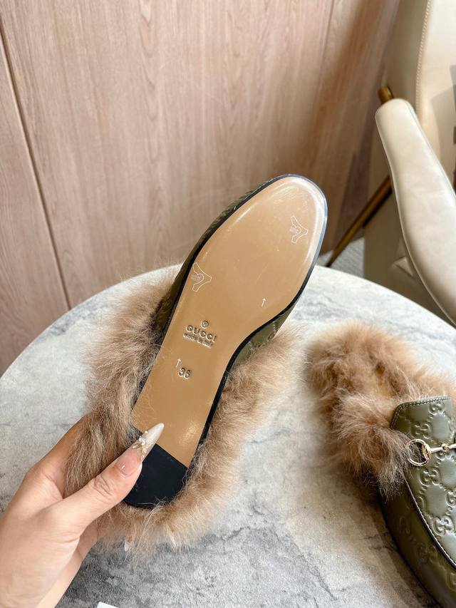 1803-2* Green ?35-42 As an outstanding representative of Gucci's design heritage, the Jordaan series horsebit loafers vividly embody classic elegance. These shoes are crafted from calfskin leather with the brand's iconic monogram pattern and Tuscan hand hair, achieving a timeless classic. The shoes are soft to the touch, with a refined and flowing silhouette, showcasing everyday elegance. Military Green Gg Calfskin Leather Women's Light Gold Toned Hardware Calfskin Lining Horsebit Calfskin Sole Flat Height: 1.0 cm