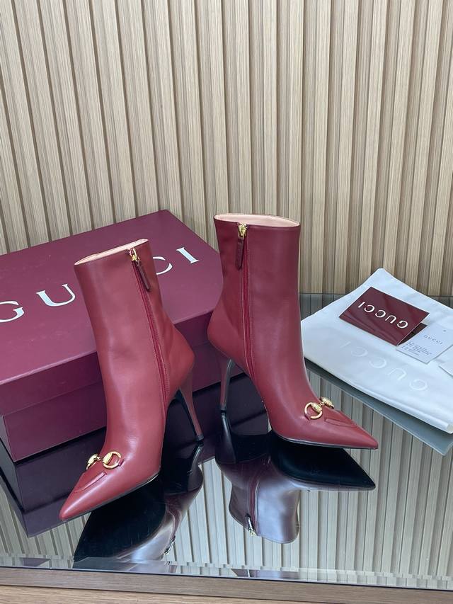 2025 Autumn/Winter Gucci New Gucci Horsebit High-Heeled Ankle Boots, Pointed Toe, Ankle Boots, Factory Price. Top-tier version, welcome to compare. 1:1 replica of the original. Note that many common versions on the market have incorrect linings. Please recognize our authentic product. Upper: Full-grain high-grade calfskin, GG monogram fabric. Lining/Insole: Full-grain high-grade lambskin. Sole: Italian top-grade genuine leather. Heel height: 10cm. Sizes: 35-42, 41, 40, 42. Custom orders are non-refundable. Packaging: Original full set, new Anchor red packaging. Gucci's creative director introduces the new pointed-toe Horsebit ankle boots, a commitment to gender equality and advocating for women's empowerment. The pointed toe and distinctive logo details highlight beauty, strength, and a spirit of freedom.