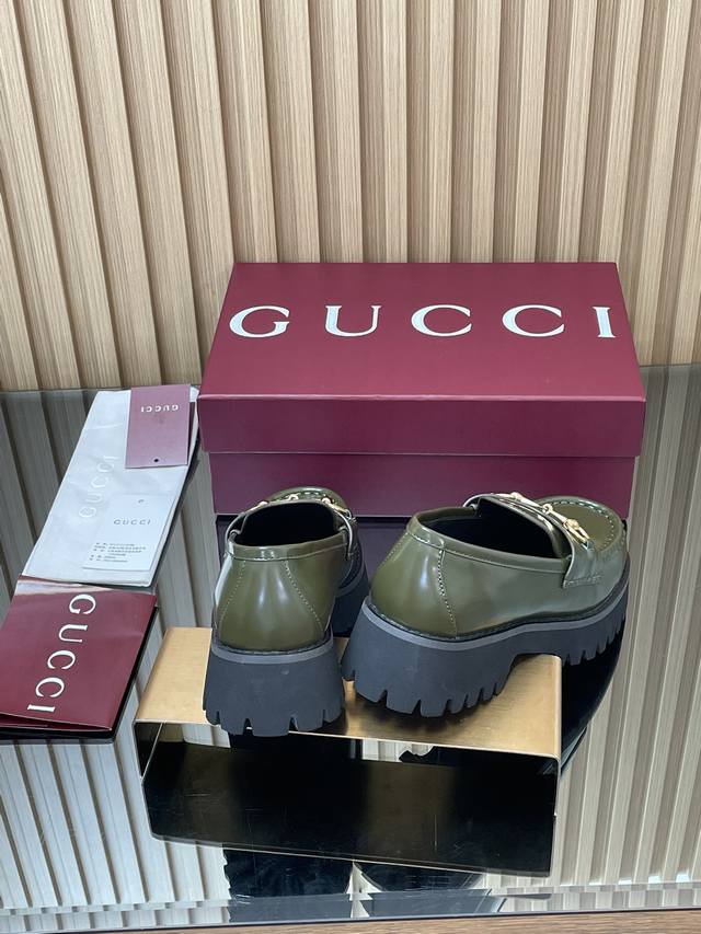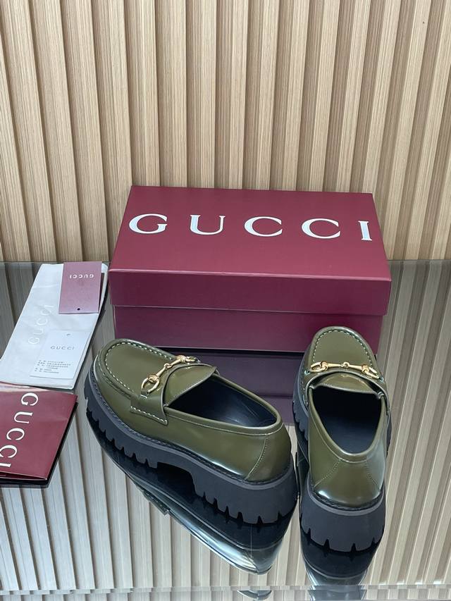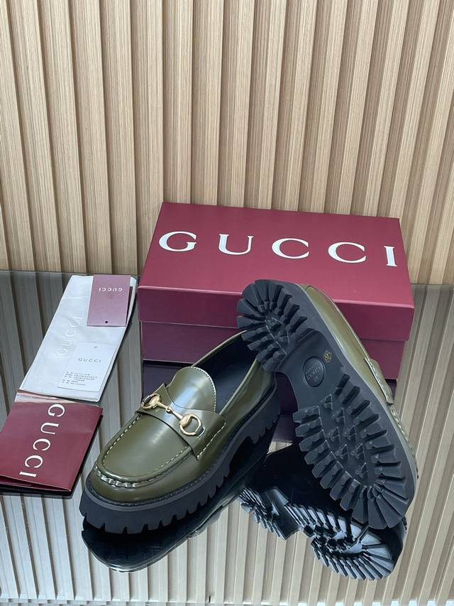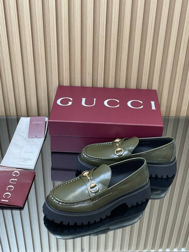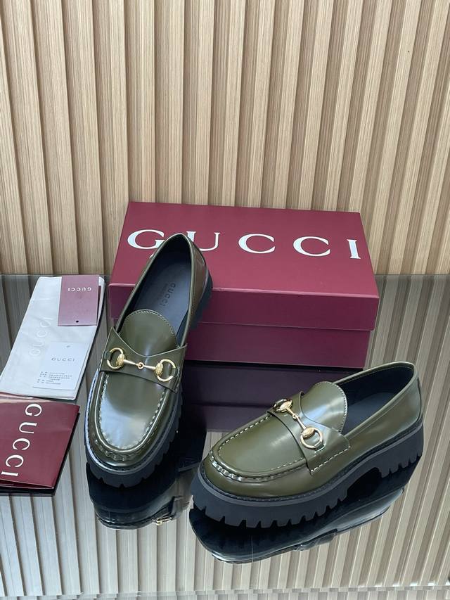 2025 Autumn/Winter Latest Gucci Silver Palladium Horsebit Platform Loafers - High-End Boutique Item (Retail Purchase Level) This loafer seamlessly blends the fashionable elements of boots and soft-top sneakers, featuring a lightweight foamed rubber grooved sole that complements its elegant silhouette. The classic horsebit detailing adds a touch of sophistication and refinement to this everyday shoe. Material: Imported split-edge beads + palladium silver horsebit lining: Silk cowhide outsole: 1:1 mold-developed high-tenacity foamed rubber sole; genuine leather welt ensures the material and craftsmanship remain consistent with the original. Sizes: 35-39 (Standard Size 4041, Custom Made) Heel Height: 4.5cm Packaging: High-end red packaging (from boutique).