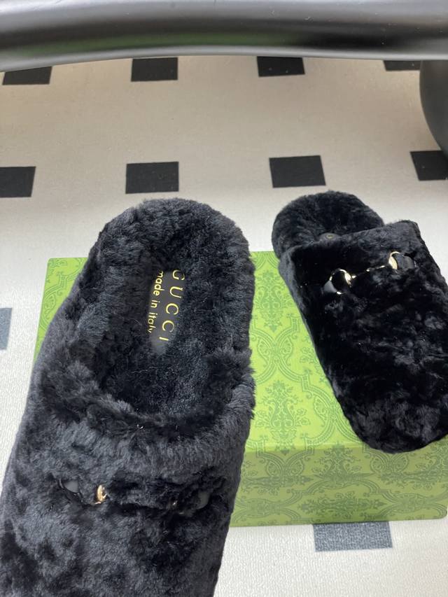 2025 Autumn/Winter New Colorway Gucci Wool Mule Shoes with Horsebit Buckle, Merino Lambswool Slippers DDD Known for its elegant silhouette, exquisite materials, and classic horsebit, this model is defined by smooth suede and a merino wool lining. DDD As an outstanding representative of design heritage, the new collection of horsebit buckle loafers vividly showcases classic elegance. These shoes feature embossed leather with the brand's iconic GG logo, achieving timeless classic appeal. The shoes are soft to the touch, with a refined and flowing silhouette, exuding everyday elegance! DDD Upper: Wool DDD Insole: Wool DDD Outsole: Leather Outsole DDD Sizes: 35-39 40, 41, 42 Custom orders are non-refundable DDD