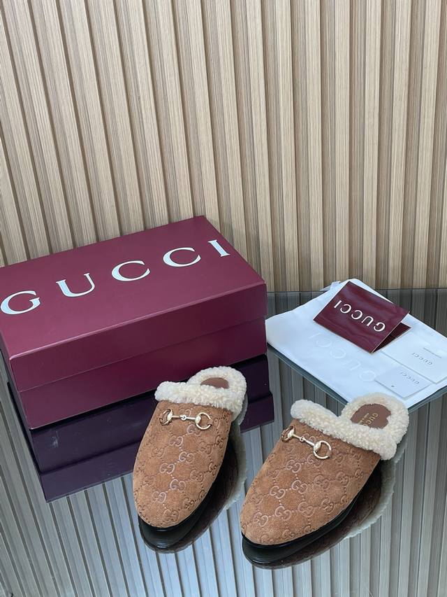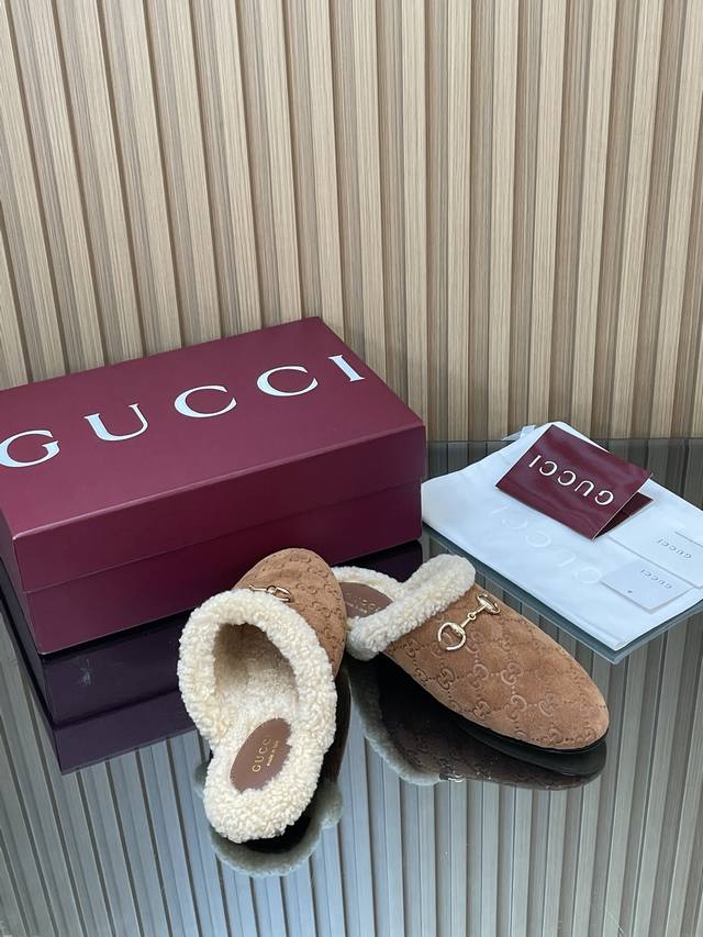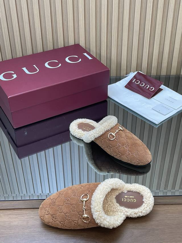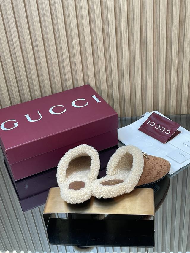 2025 Autumn/Winter New Gucci Mini Double GG Furry Shoes Merino Wool Slippers New Mule Furry Slippers High-end Gucci Casual Relaxed Slippery Furry Slippers DDD Gucci High-version furry slippers Original 1:1 replica development Original consistent imported suede deerskin pattern 1:1 copy, top quality DDD Material: Imported GG embossed suede deerskin DDD Insole: 100% imported cowhide Merino wool DDD Outsole: Italian genuine leather DDD Buckle: Light gold horse street buckle DDD Packaging: Full set of Anchor wine red packaging DDD Size: 35-42 404142 Customized, no returns or exchanges DDD This classic mule shoe is reinterpreted through Gucci's aesthetic vision. The soft, padded upper complements the classic silhouette, while the gold horse street buckle and contrasting Merino wool lining add charming details. DDD