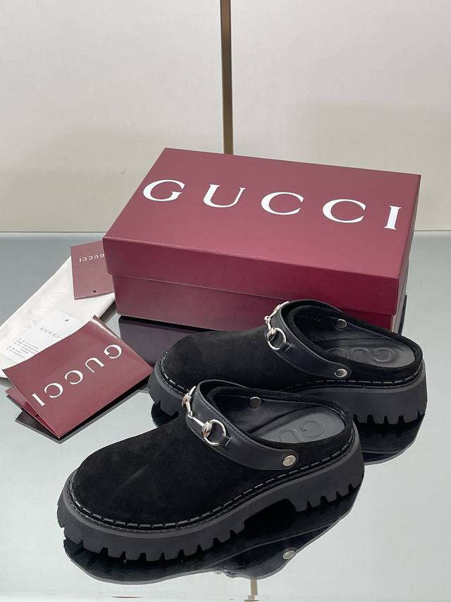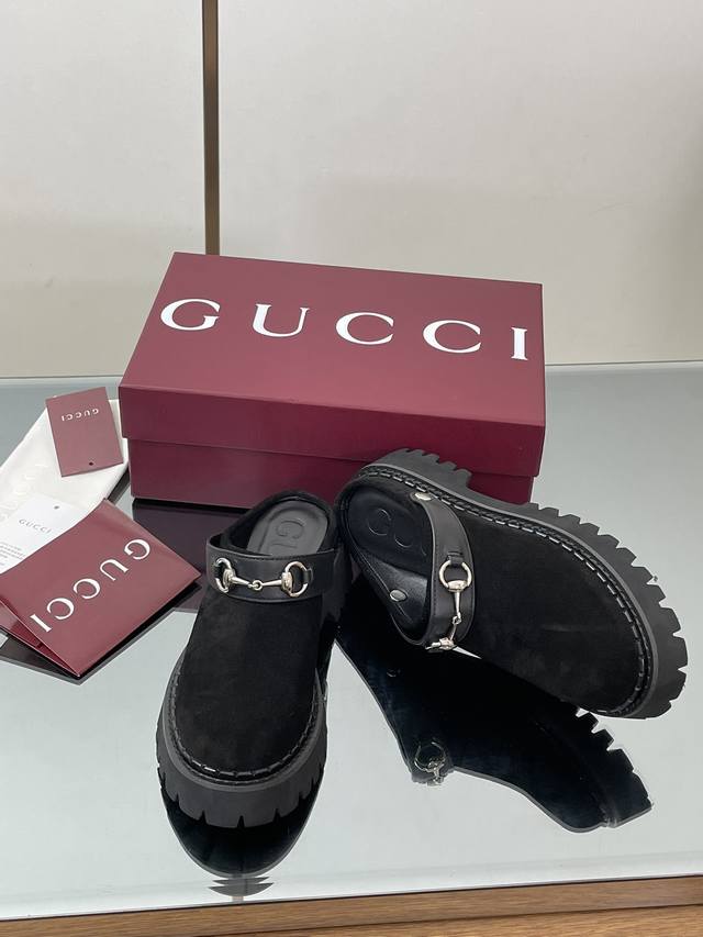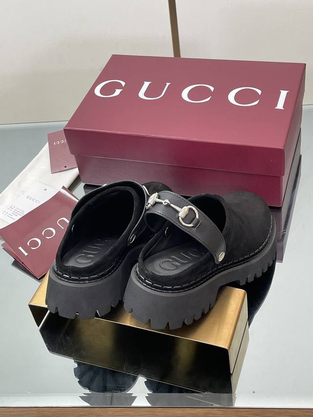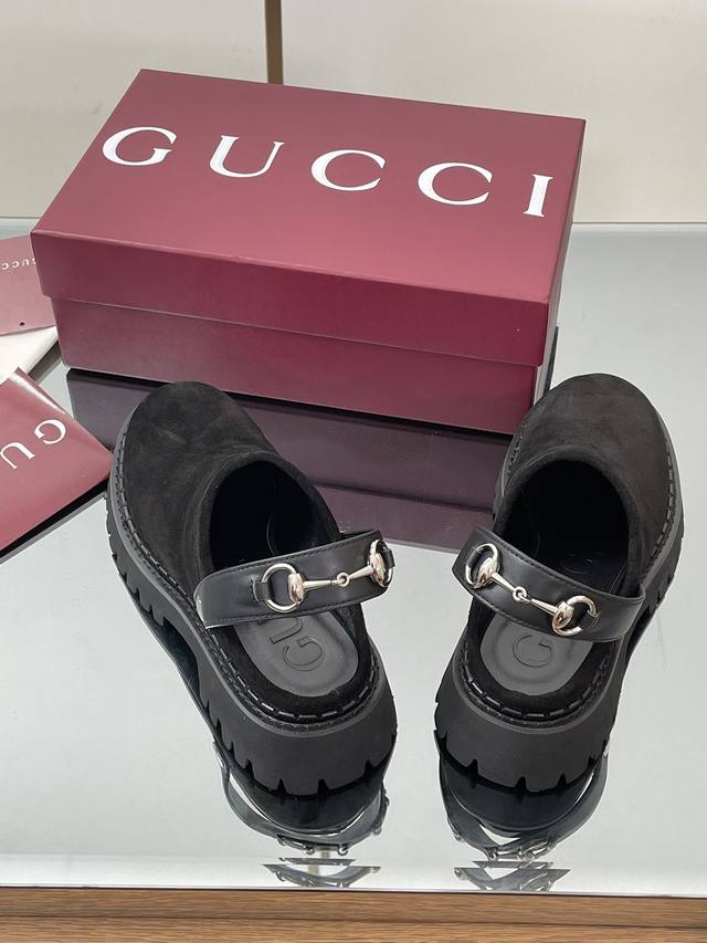 2025 Early Autumn Gucci Women's Horsebit Mules DDD New Grooved Sole Loafers Slip-on Loose-fitting Slip-on Slippers with Back Strap and Open Back Design Thick Sole Casual Single Shoes DDD Thick sole single shoes and slippers are very popular recently! It's because they look so slimming on the feet! Fashionable and versatile! Same style as the original! DDD As a tribute to the brand's equestrian origins, the Horsebit, after the test of time, integrates a rich historical heritage with modern fashion style. These women's mules are crafted with imported cowhide and smooth suede. Outer Material: Imported cowhide + silky suede for a vintage feel. Lining: Imported, matching cowhide lining. Outsole: 1:1 mold-developed high-tenacity foam sole; genuine leather welt that is neither too heavy nor too stiff, and will not collapse. All materials and craftsmanship are consistent with the original. Sizes: 35-42 (standard size 404142, custom-made). Heel Height: 5cm. Packaging: High-end boutique packaging. Price: [Price not specified]