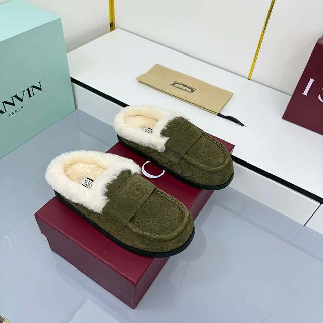2025 Early Autumn Latest Colorway Gucci Fleece Slippers, Newest Flat Half-Wool Slippers (