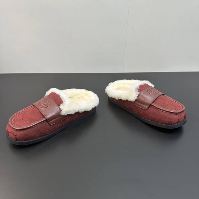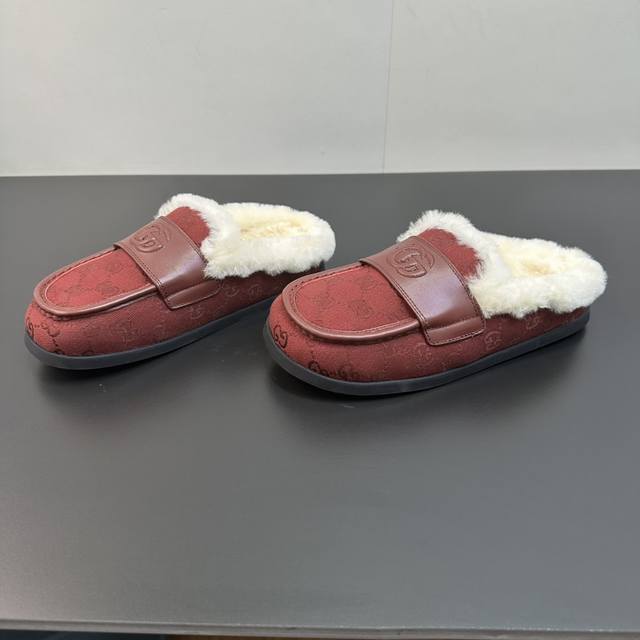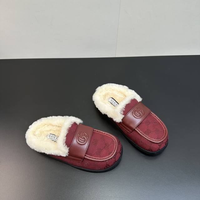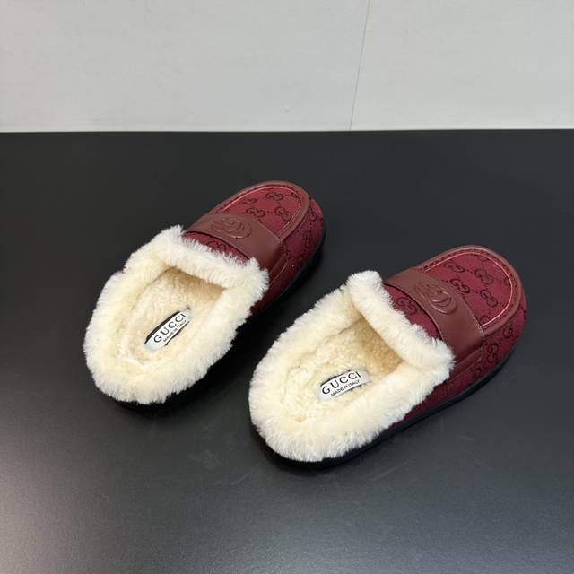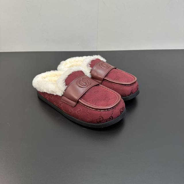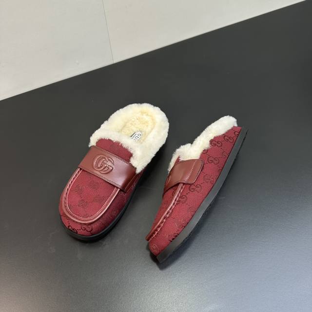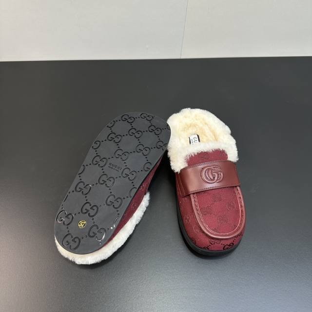 2025 Gucci new Merino wool slip-on sandals, reinterpreting Gucci's equestrian tradition. These slip-on sandals are made of leather and are part of the Gucci Love Parade collection. Features include a premium mini GG embossed sheepskin upper, eco- friendly special material upper, classic GG monogram canvas, imported Merino wool lining, and imported mini GG embossed new Gucci mules/moccasins/closed-toe slippers, synchronized with the official website. A 1:1 replica of the original, all materials and details are identical to the original. Regular production. Sizes 35-39, 40, 41. Custom orders are non-refundable. Latest double G logo rubber sole.