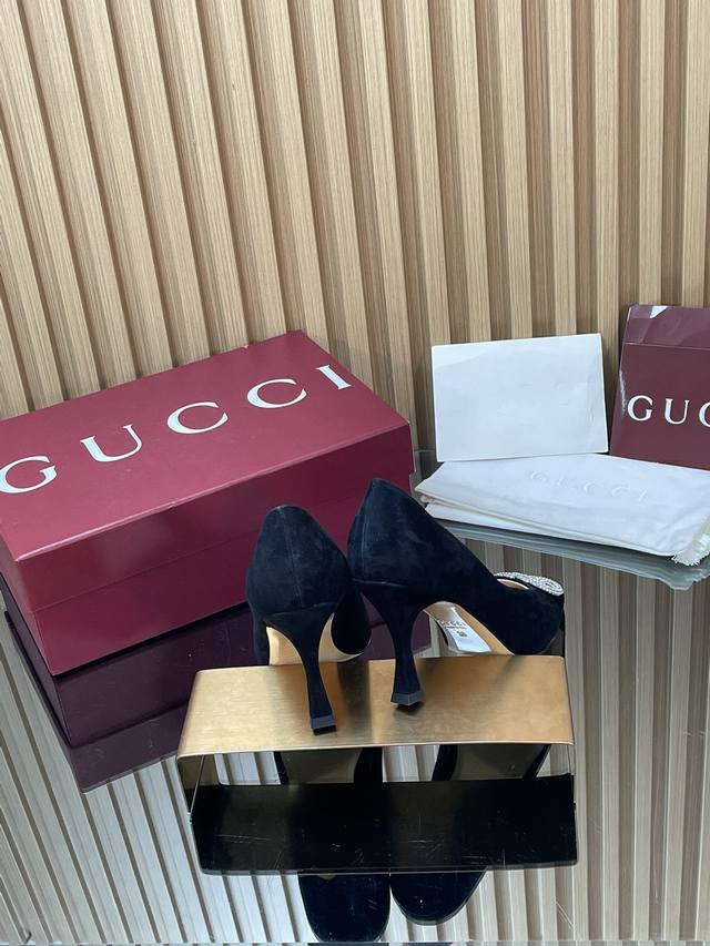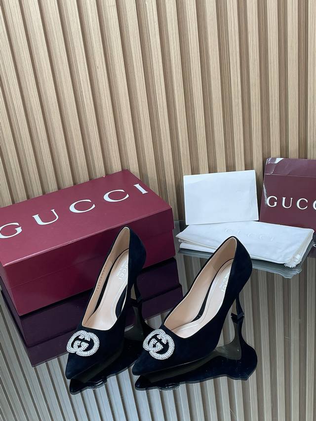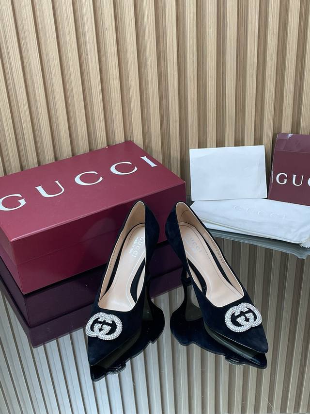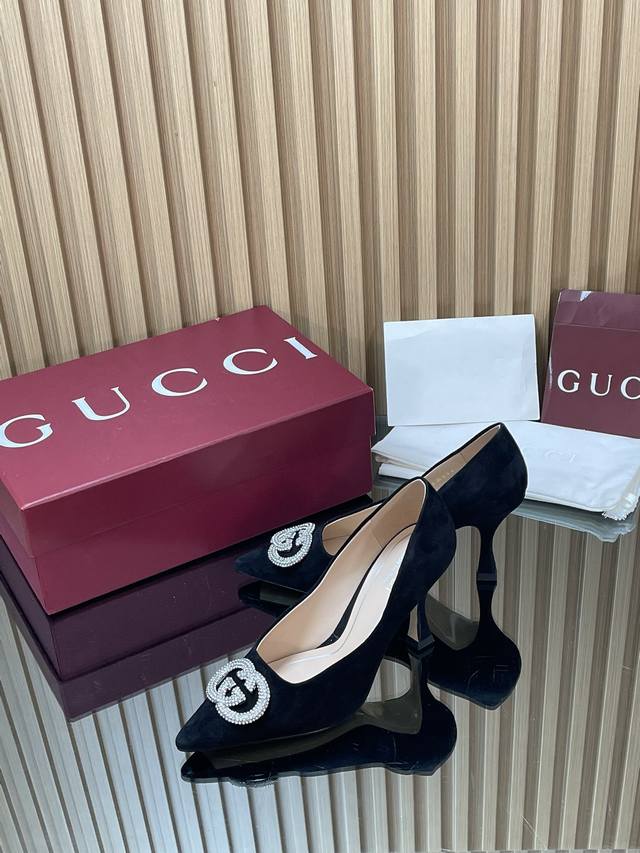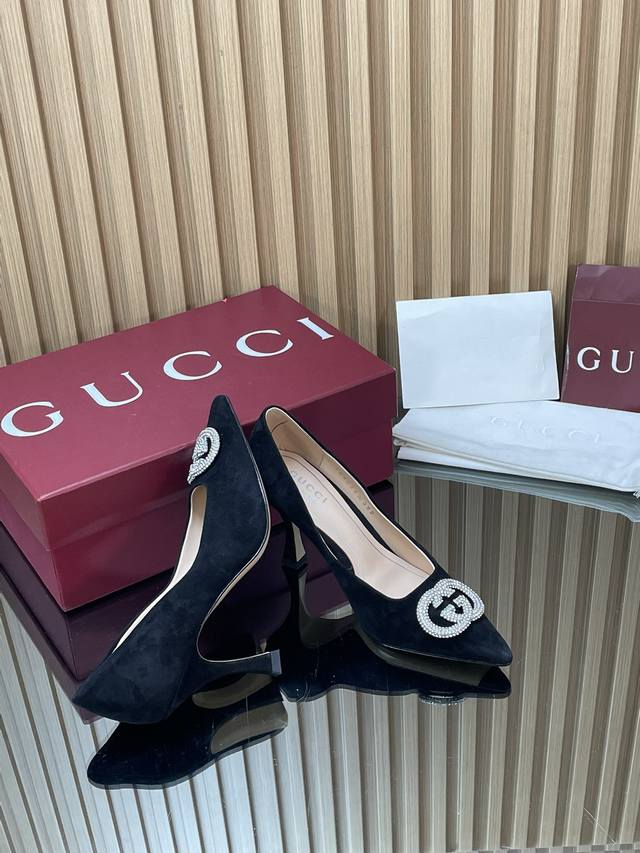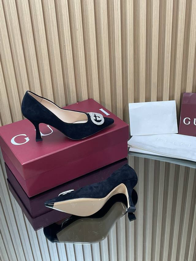 2026 Early Spring Gucci New Style Gucci Crystal Diamond Inlaid Interlocking Double G Buckle Low Mouth Women's Shoes Wine Glass Horseshoe Heel Commuter Single Shoes Luxury, Elegant and Noble High Heels Factory Price p DDD Top Version, Welcome to Compare. Original 1:1 Replica Ddd Please recognize our genuine product guarantee DDD Upper: Imported patent leather grain leather metallic leather sheepskin deer leather Ddd Insole: Full grain high-grade lambskin Ddd Sole: Italian top-grade genuine leather sole Ddd Heel height: 8.5Cm Ddd Sizes: 35-42 42 41 40 Custom orders are non-refundable Ddd Packaging: Original full set of Anchor red packaging DDD This Gucci low mouth shoe is made of imported patent leather metallic leather sheepskin deer leather. The shoe shape has elegant and neat lines, combining versatility and exquisite style. The exquisite interlocking double G clasp, adorned with crystal rhinestones, adds a touch of sparkle to the design. The classic stiletto heel and pointed toe embody a sophisticated yet effortlessly chic style perfect for everyday wear.