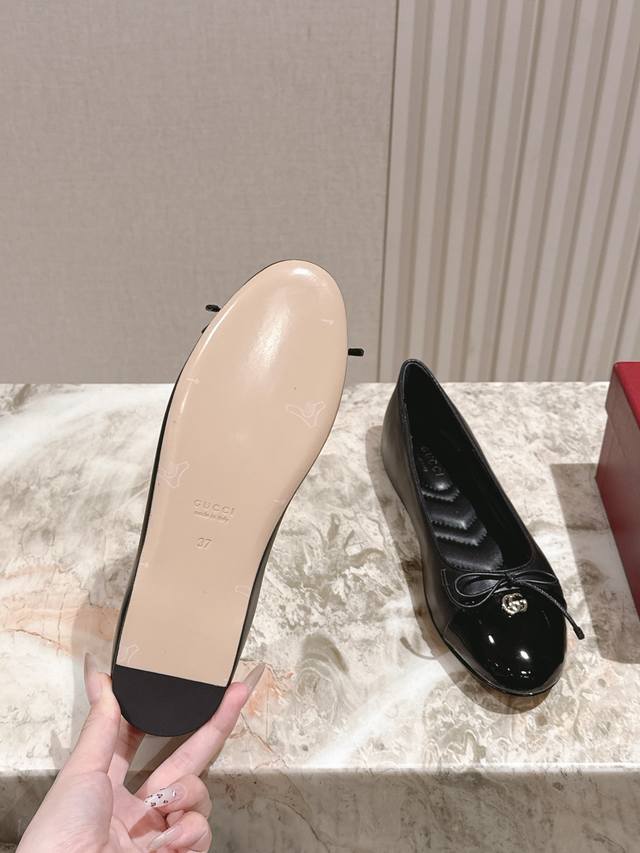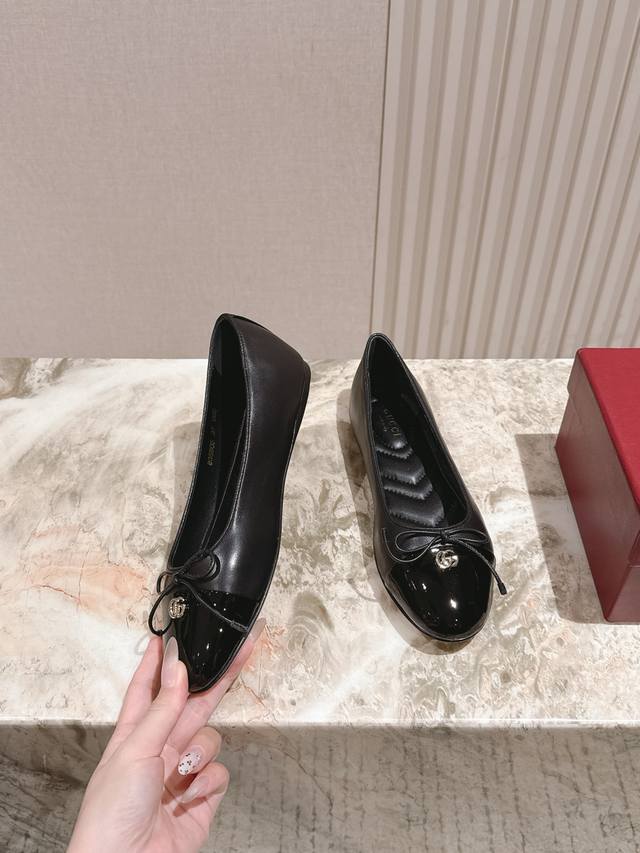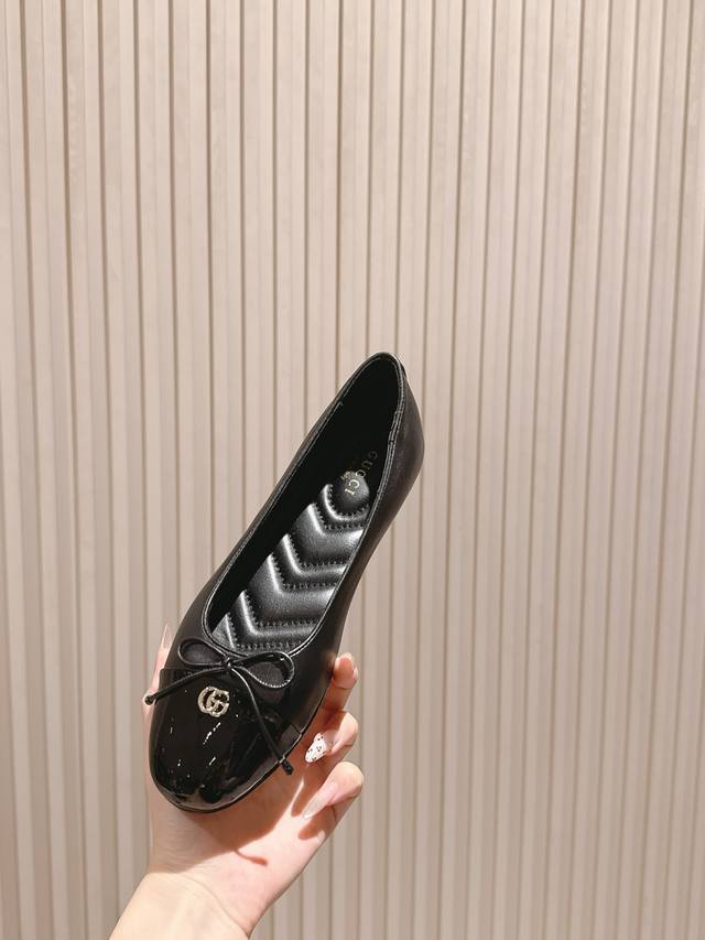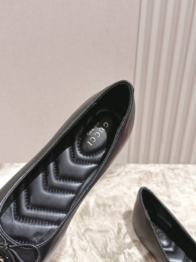 225 Gucci Ballet Flats This year is said to be the year of ballet flats, and Gucci's latest ballet flat collection is a hit! The round toe design and bow-shaped rhinestone buckle add a touch of playfulness to its exquisite elegance, making them fashionable and beautiful. Upper: Cowhide Lining: Sheepskin Insole: Sheepskin Sole: Original Gucci leather outsole Sizes: 35-40 Comes with a complete set of boutique-style gift box packaging!