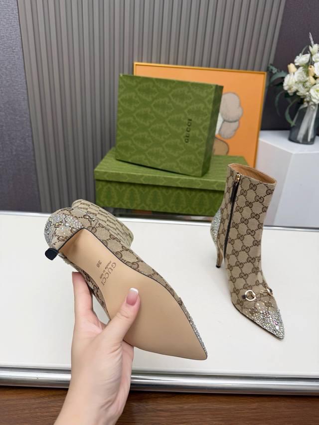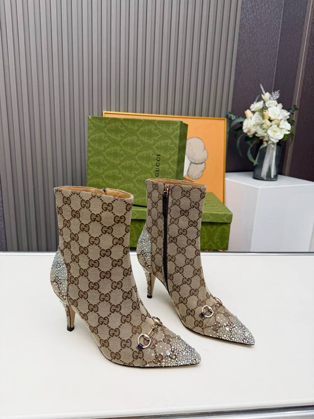 2519A-8 Gucci Ankle Boots DDD Latest Gucci Ankle Boots DDD 1:1 Replica of Original Sneakers, Meticulously Crafted DDD Original Hardware Buckles DDD Outer Material: Gucci Monogram Fabric with Rhinestones DDD Lining: Cowhide Lining DDD Lightweight and Durable Rubber Outsole DDD Boot Height: 150mm, Heel Height: 85mm DDD Standard Sizes: 35-40, Size 41 Available by Custom Order DDD Rubber Outsole: Factory Price: p Yuan DDD Genuine Leather Outsole: Custom Order 470 Yuan, No Returns or Exchanges Genuine Leather Outsoles DDD Welcome to Share and Sell! DDD