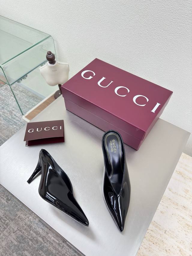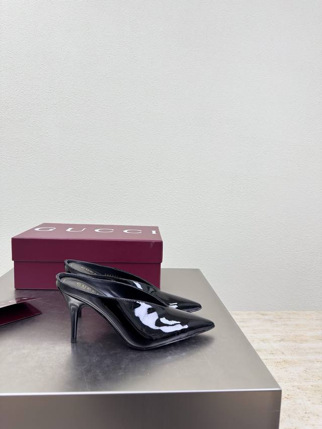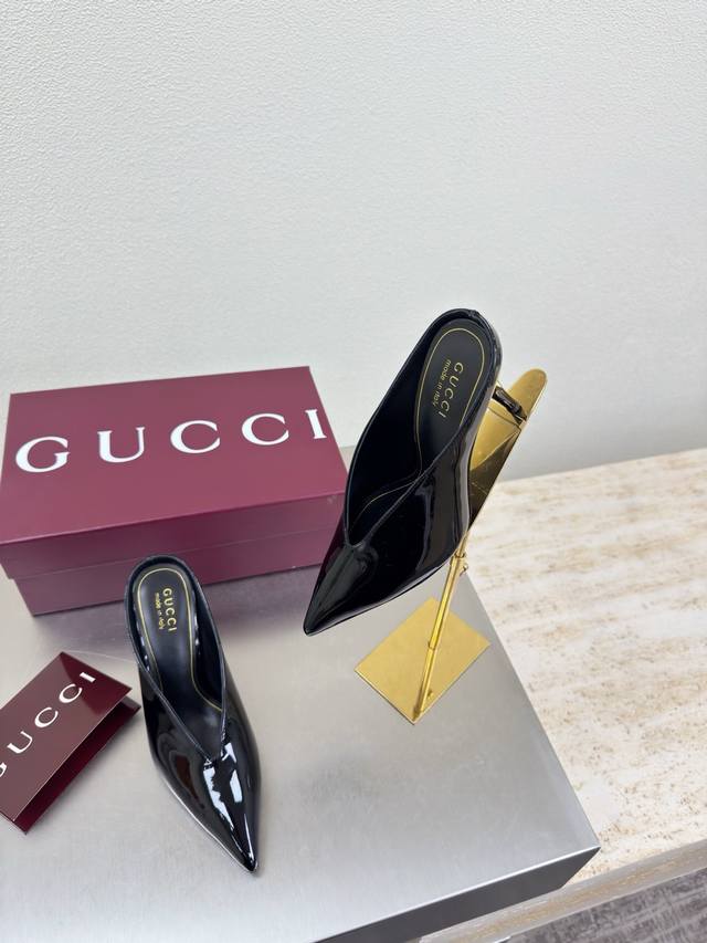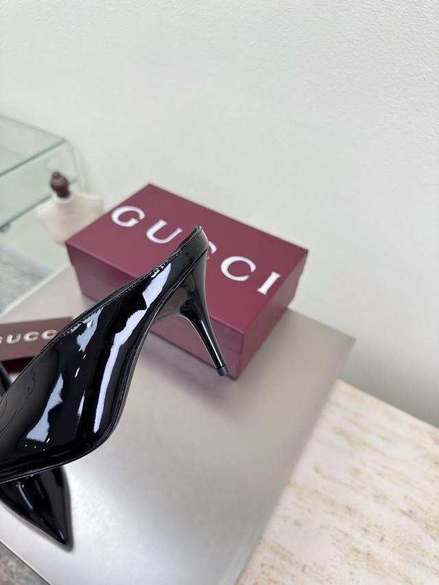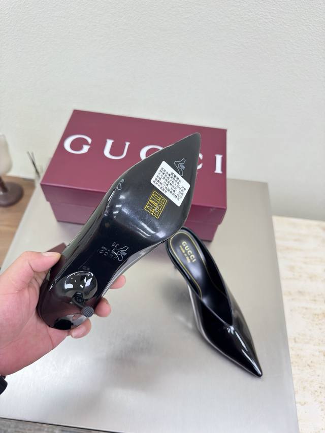 26 High-End Gucci Pointed-Toe Mules (DDD) Black calfskin patent leather saddle buckle new Gucci (DDD) Hot Item (DDD) Upper features original rhinestone-encrusted classic logo (DDD) Exquisite gold insole logo (DDD) Italian imported genuine leather outsole (DDD) Sheepskin lining insole (DDD) Classic hardware buckle original custom (DDD) Sizes: 35 36 37 38 39 40 41 42 (DDD) Custom sizes 40 41 42 (DDD) Comes with original packaging (DDD)