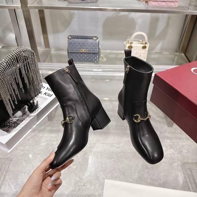 8-inch women's boots, long-term stock available. Gucci's popular fashion style cleverly utilizes round toe and other design elements for a stylish look. Material: Imported calfskin. Lining: Imported sheepskin insole. Sizes: 35, 42. Notes: 40, 41, 42. Custom-made. Factory direct wholesale.