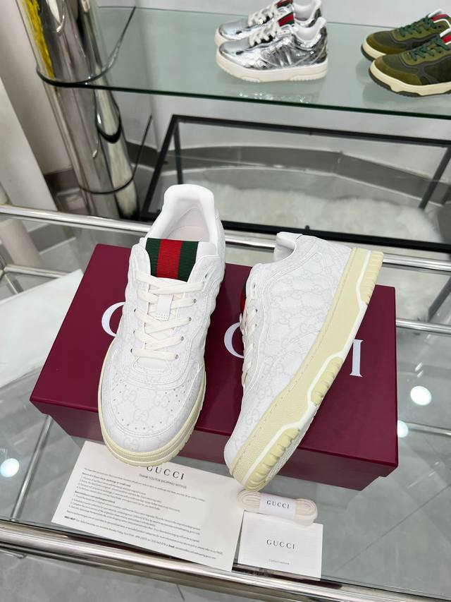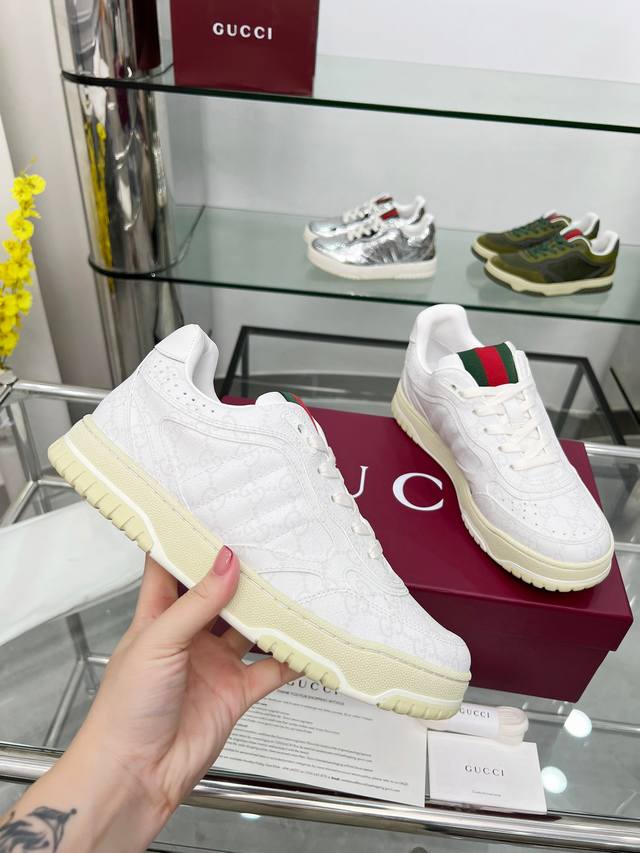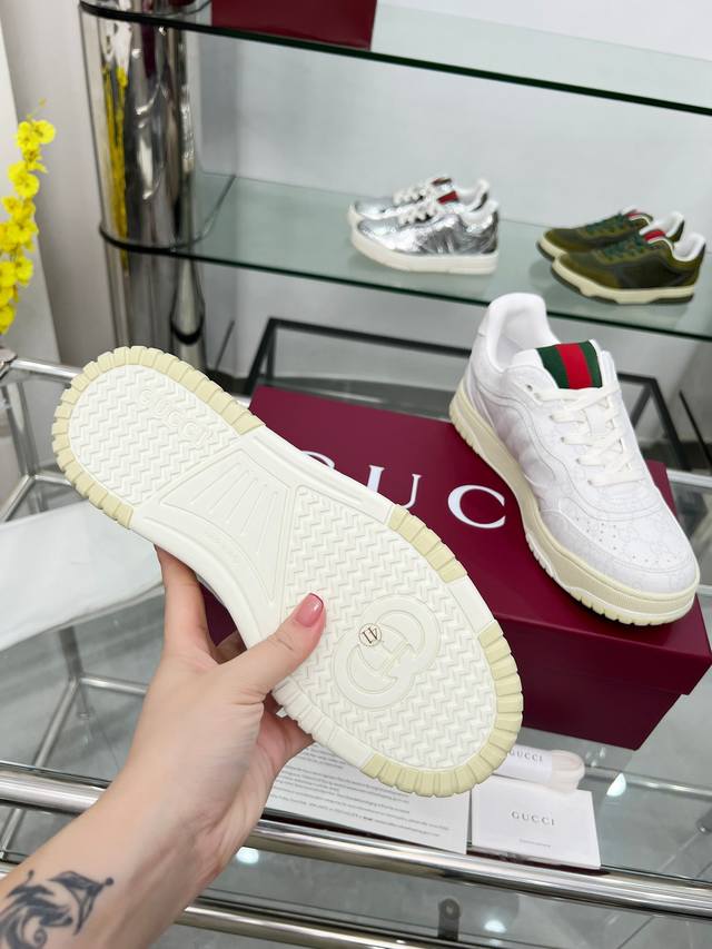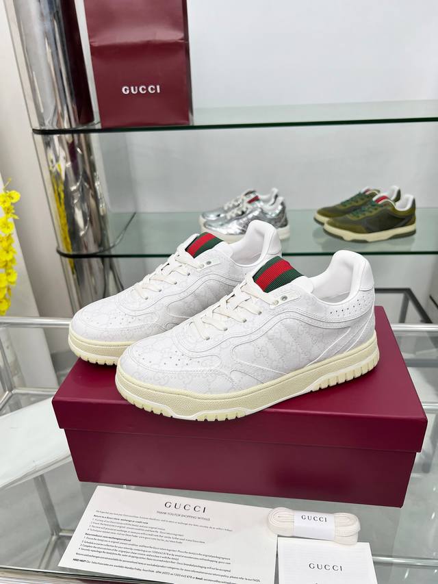9097-1 Factory Price p Sabato De Sarno, Gucci's first sneaker, is a reimagined version of the brand's classic stripes in the Re-Web series, featuring bold and edgy details that complement a modern silhouette. This shoe is crafted from white leather. It is adorned with several classic brand details and features a striking red and green webbing tongue, making it instantly appealing. Sizes: Women's 35-41 (35, 40, 41, custom orders available); Men's 39-46 (39, 45, 46, custom orders available). Packaging: Full packaging.