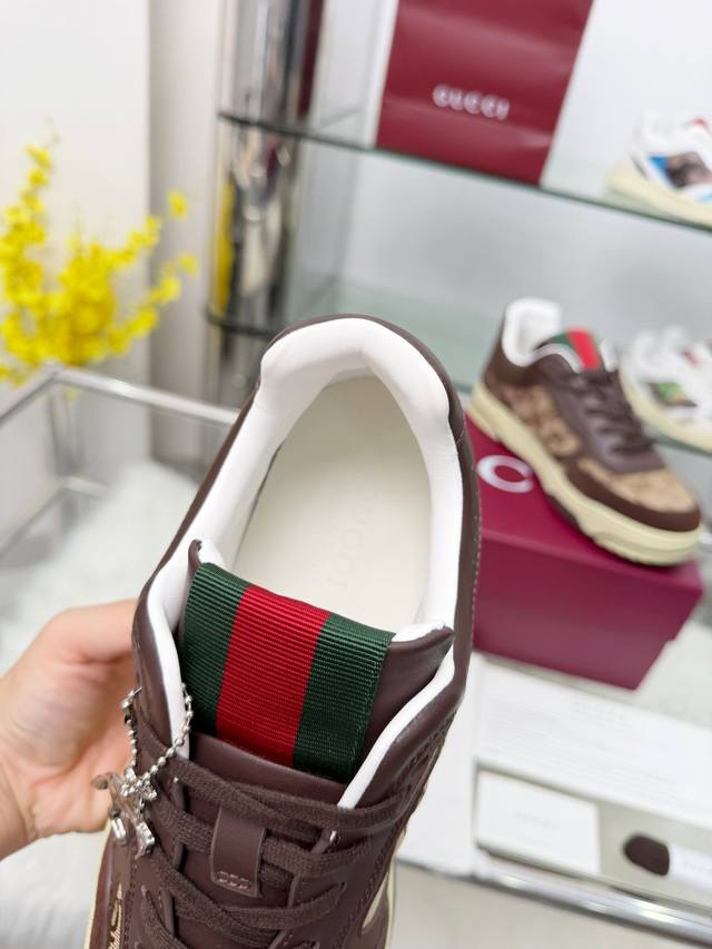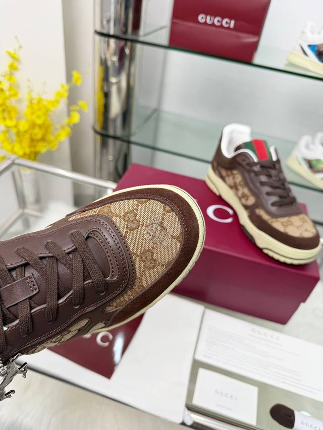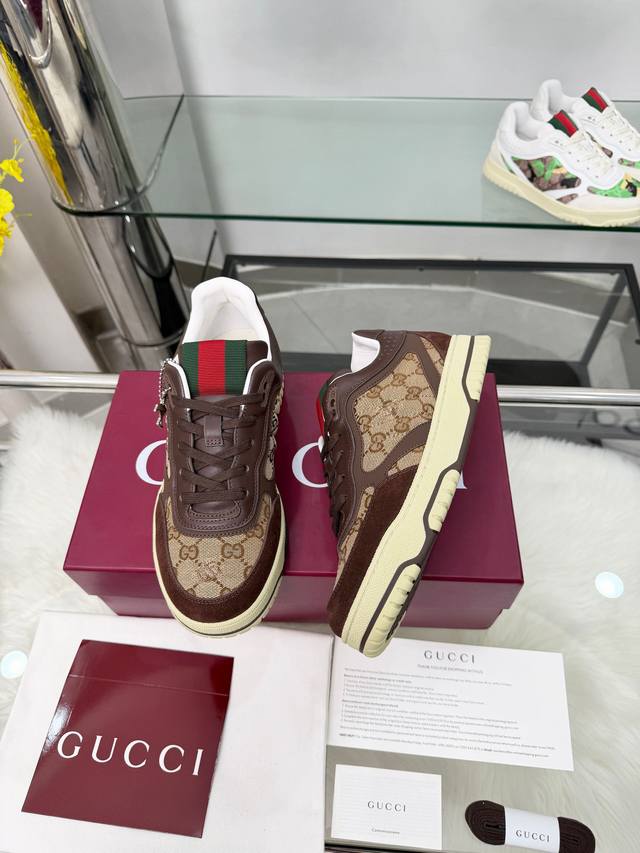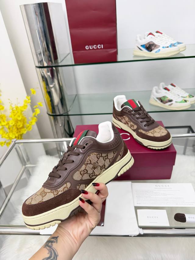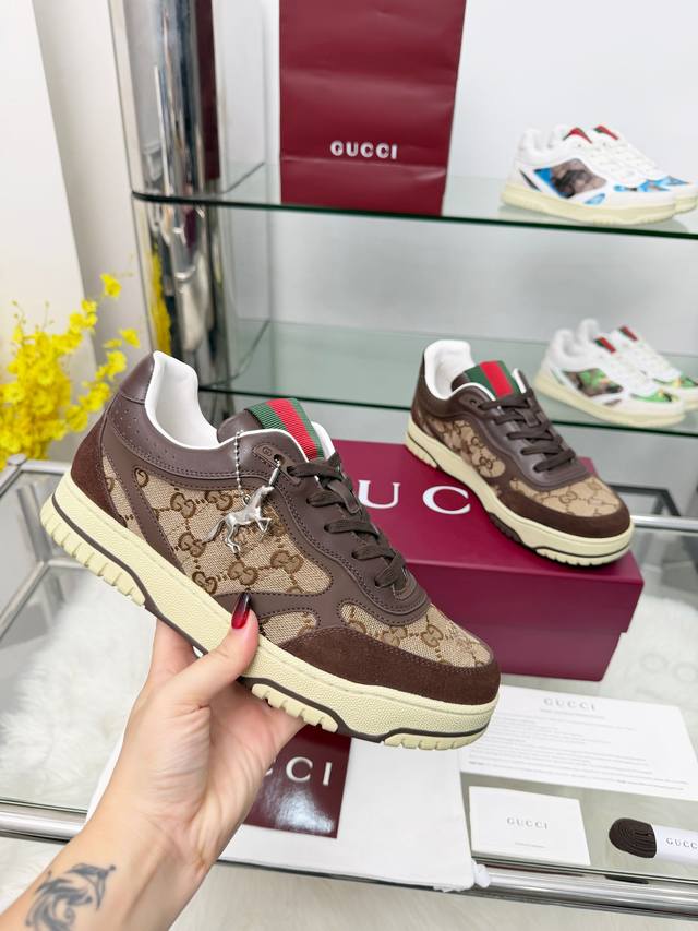 9097-2 Men's Factory Price (p Ddd) A variety of fresh color combinations reinterpret the versatile charm of the Re-Web series' modern silhouette, highlighting classic Gucci details. These sneakers are crafted from pebbled leather, adorned with a Gg silhouette pattern, and meticulously finished with the iconic red and green webbing trim, showcasing a distinctive style. (Ddd) Sizes: Men's 39-46, 39, 45, 46 (Made to order) (Ddd) Packaging: Full packaging (DDD)