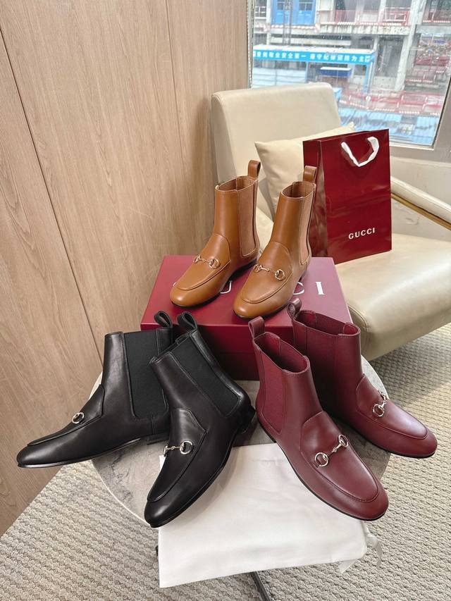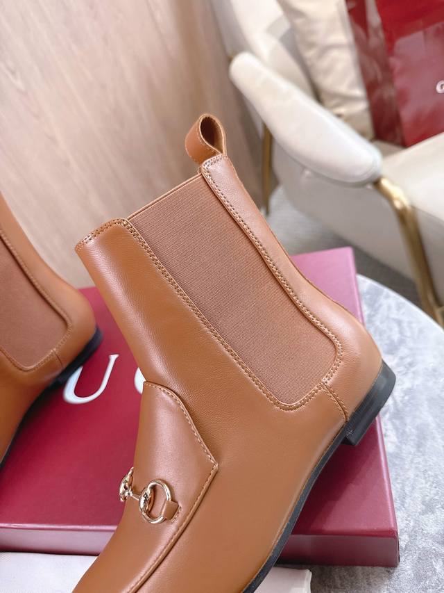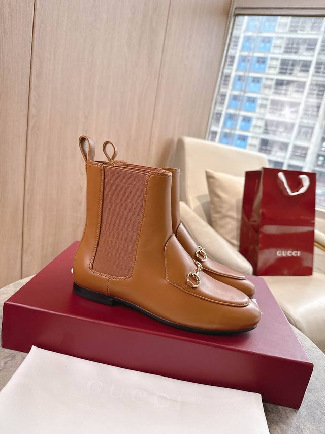 920-2 Brown 35-42 Gucci Jordaan loafers are a classic all-season staple. This ankle boot offers a fresh take on the classic silhouette, crafted from smooth leather and adorned with a light gold horsebit buckle for a unique charm. Brown leather, light gold hardware, horsebit buckle, leather sole, flat sole, height: 1 cm