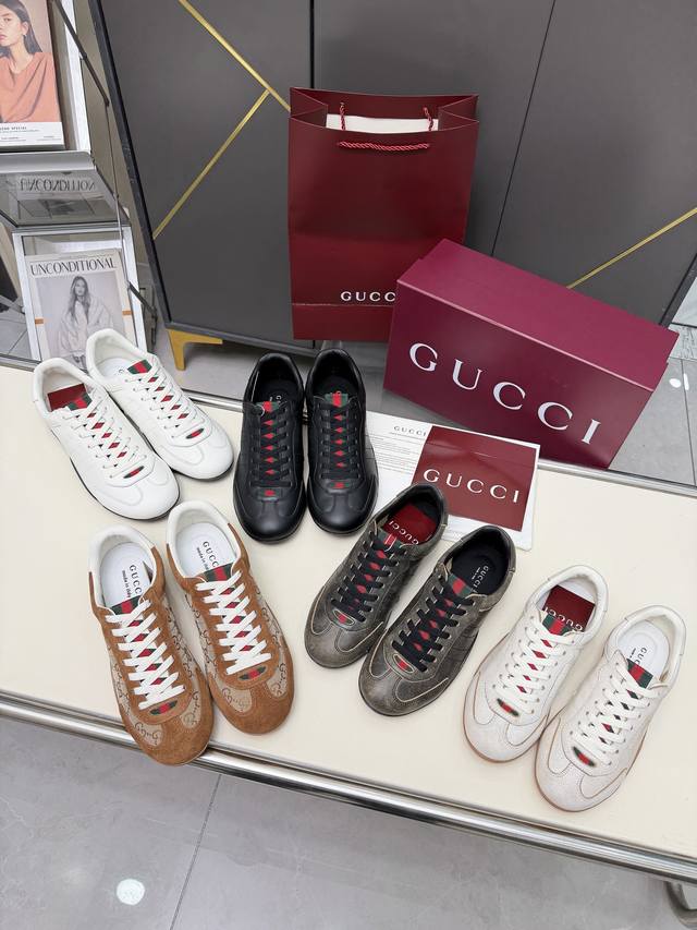 A must-have classic from the Gucci collection! The brand's signature elements are cleverly integrated into the design, making it highly recognizable and showcasing unique taste. The brown and white color scheme is simple yet sophisticated, while the combination of suede and fabric provides comfort and adds texture. The red and green webbing details are full of Gucci's consistent luxurious style. Sizes 35-40 and 40-45.