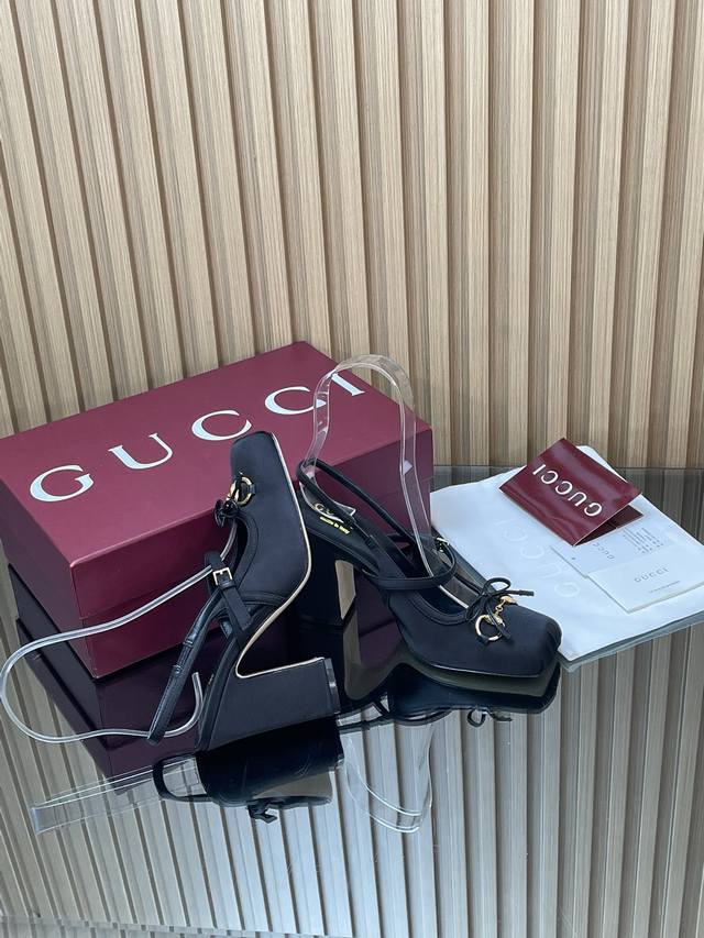 Black Silk Gucci High-End Boutique 2025 Overseas Early Autumn Gucci Horsebit Series New High-Heeled Square Toe Ballet Shoes Horsebit Buckle New Small Square Toe Mules Classic Exquisite Elegant Bow Low Mouth Shoes High-Quality Back Lace-up Open Back Shoes DDD Original Quality, Every detail is carefully crafted, comparable to ZG, unique quality! DDD 2025 Autumn/Winter Collection: This horsebit back-lacing pump features a square toe design with elegant bow details, paying homage to traditional ballet flats. Crafted from leather and adorned with light gold accents, the Sacchetto construction ensures exceptional comfort. Material: Original custom imported silk fabric; Hardware: Horsebit design from a large Dongguan factory; Lining/Insole: High-end custom sheepskin lining; Heel height: 6.5 and 9.5 cm; Outsole: Italian genuine leather; Sizes: 35-41, 40, 41, 42 (Made to order, no returns or exchanges); Italian creation; Red full set, high-end original packaging.