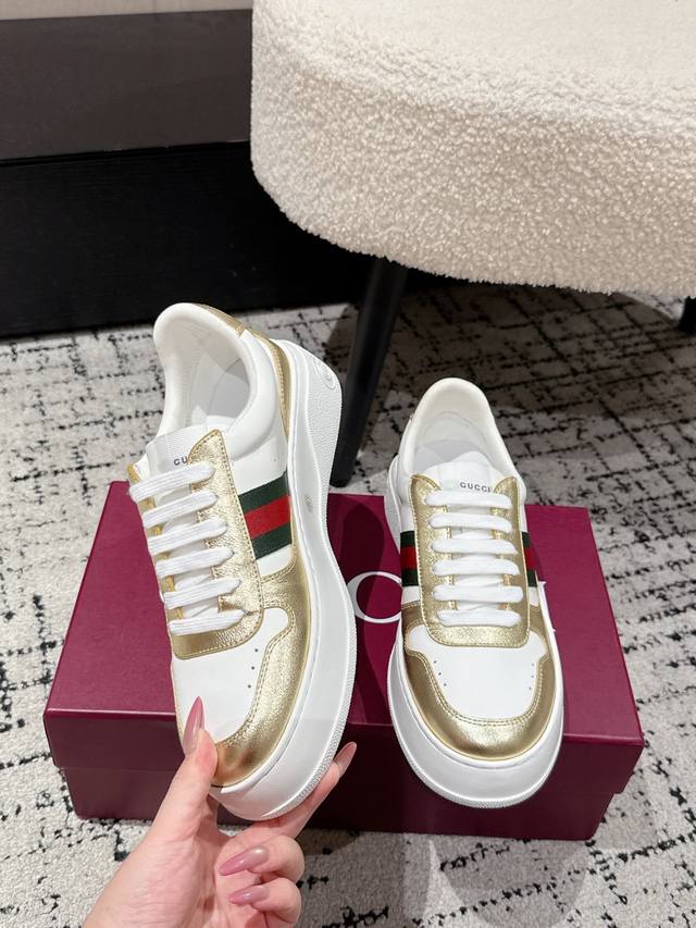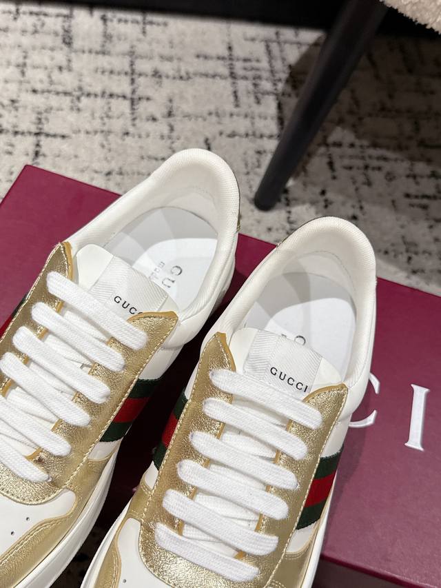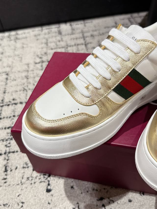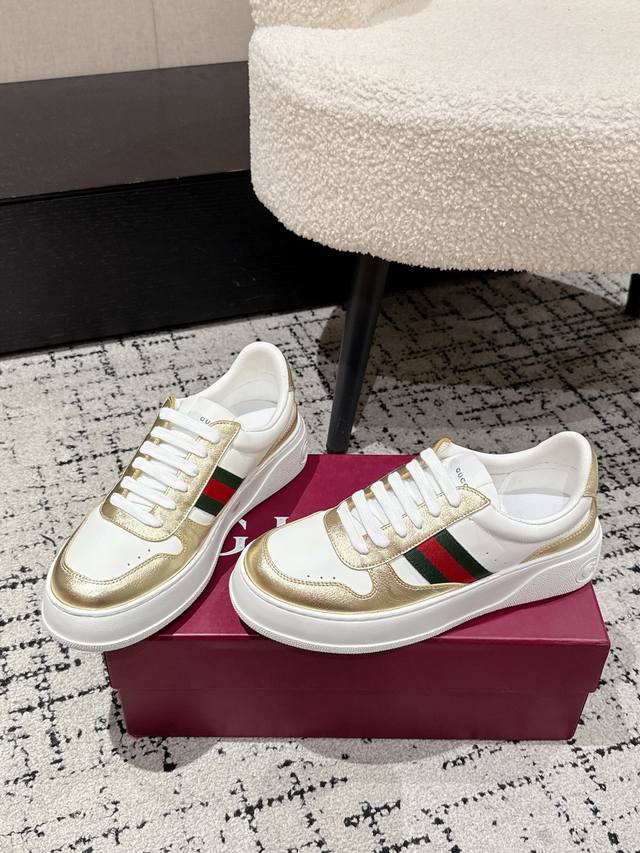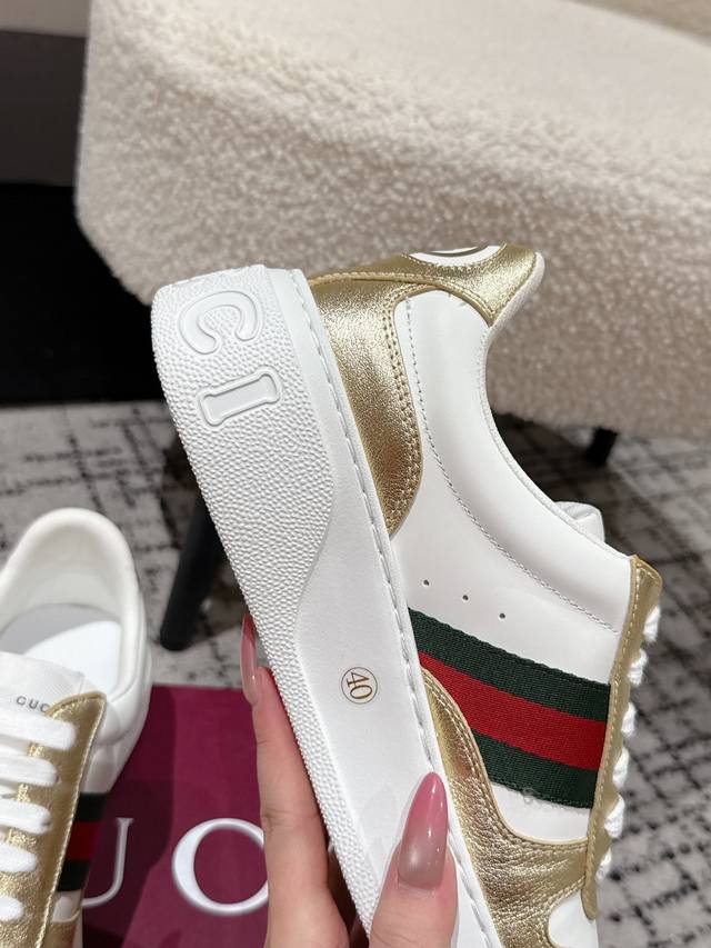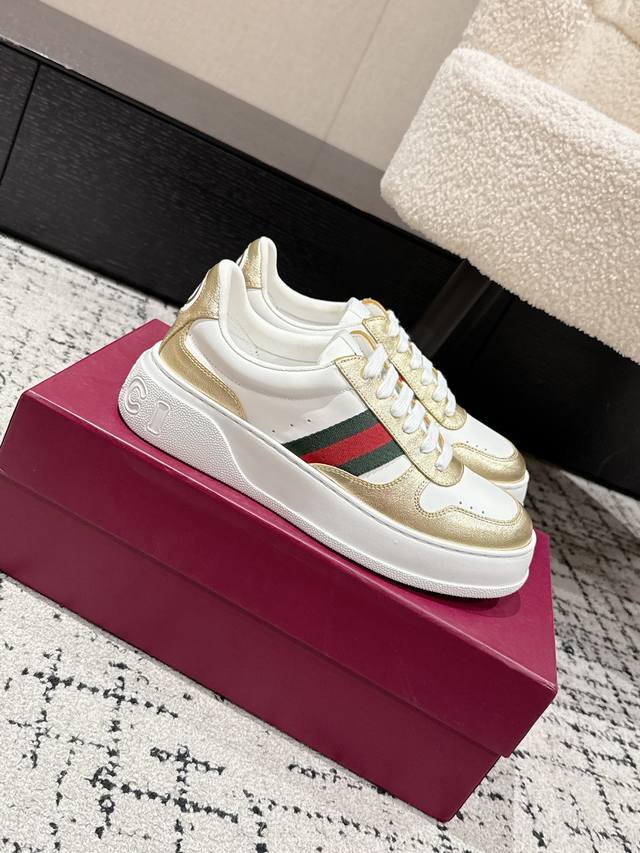 Couple Style DDD Gucci 25 Classic New Color White Sneakers DDD These incredibly stylish and comfortable sneakers are versatile, super lightweight, and have a strong retro feel. Everyone loves them with the platform sole~ DDD Material: Original custom imported cowhide with perforated process DDD Lining: Water-dyed sheepskin lining DDD Outsole: Exclusively molded TPU outsole DDD Size: #35-45 Women's 40, Men's 45 (custom made) DDD