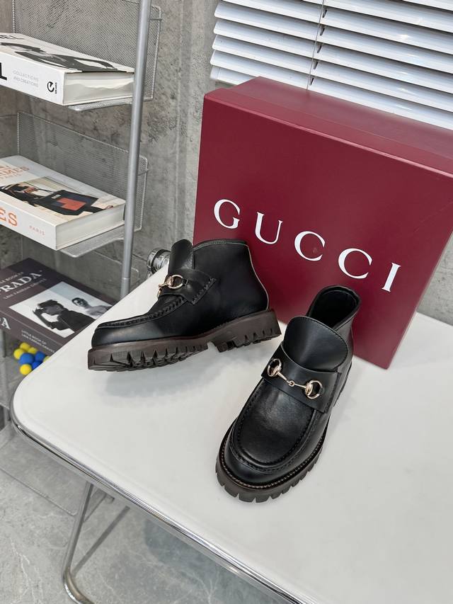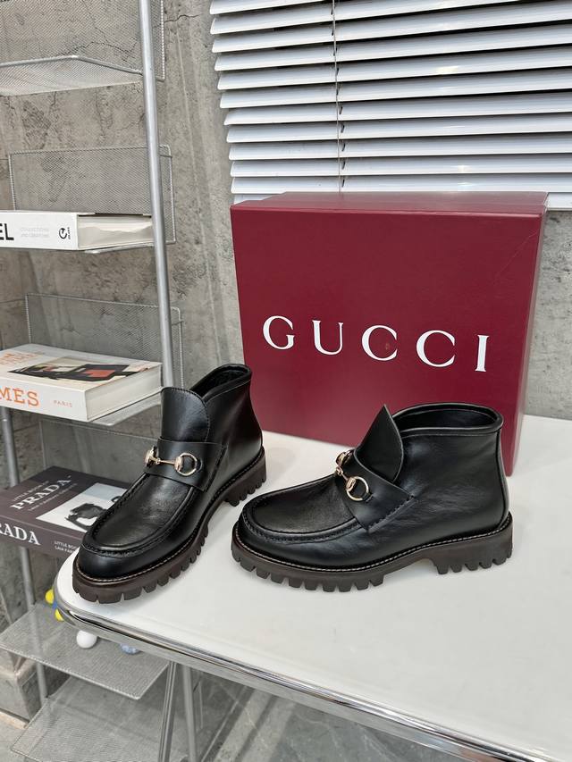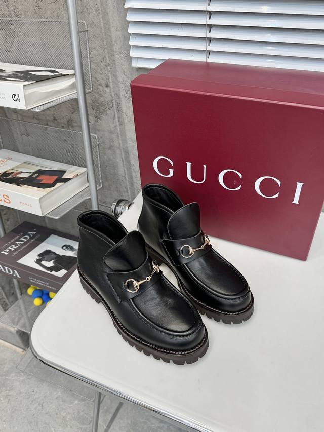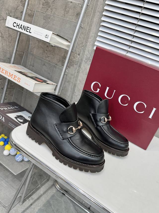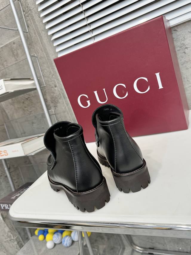 Factory direct price 4-inch women's boots. Gucci's trendy and popular style cleverly utilizes round toe and other design elements for a fashionable look. Material: Imported calfskin suede. Lining: Imported sheepskin insole. Made with the original sole. Sizes: 35, 42. Notes: 40, 41, 42 are available for custom orders.