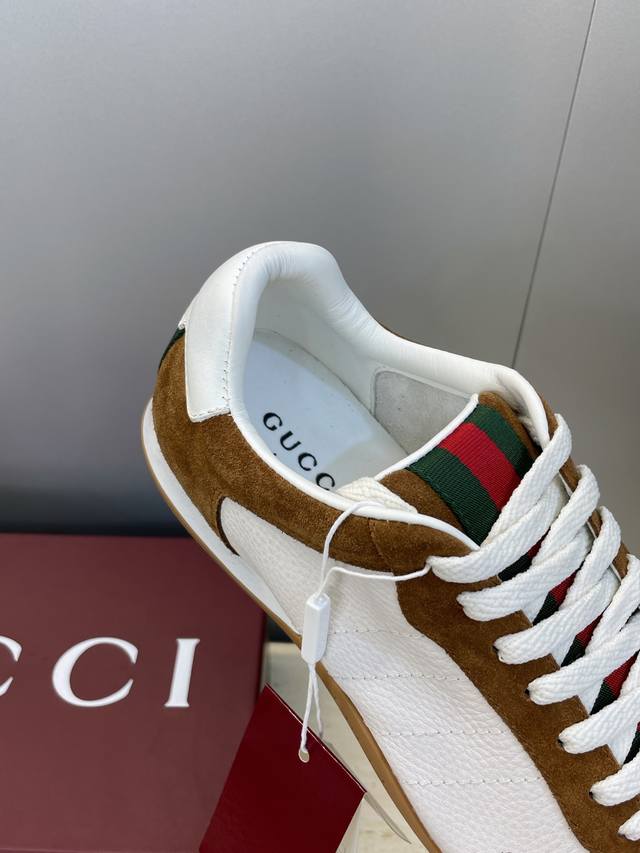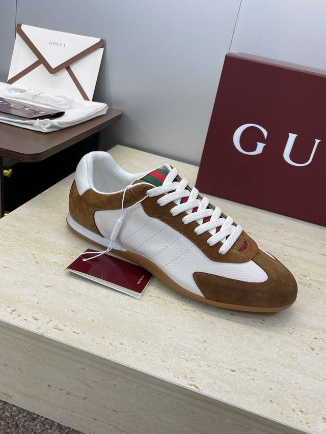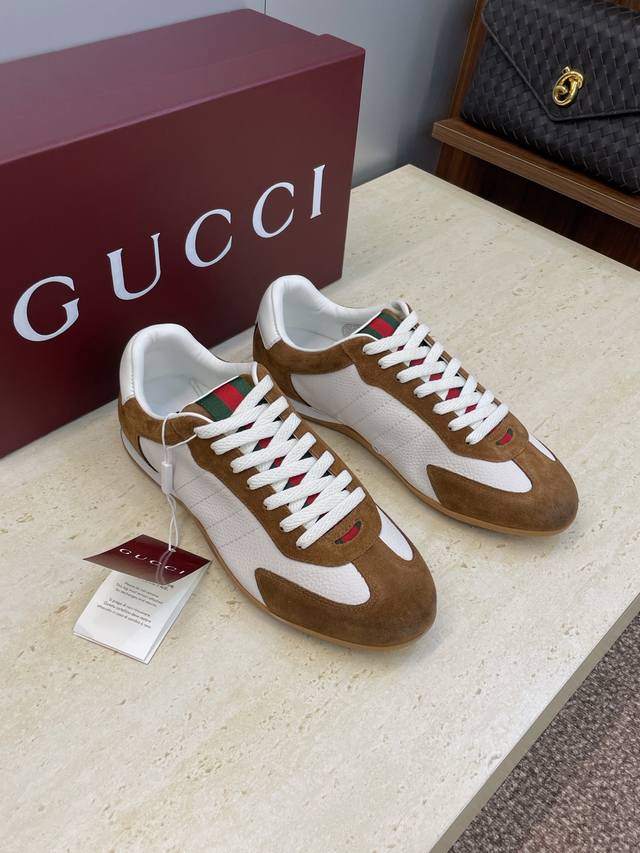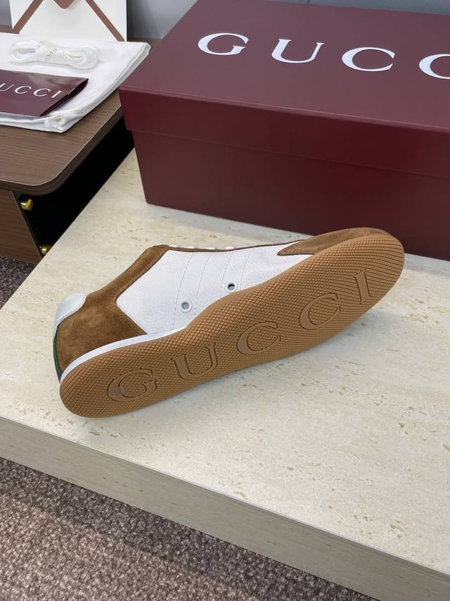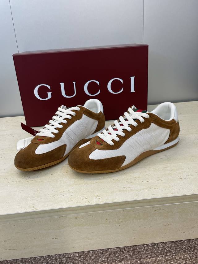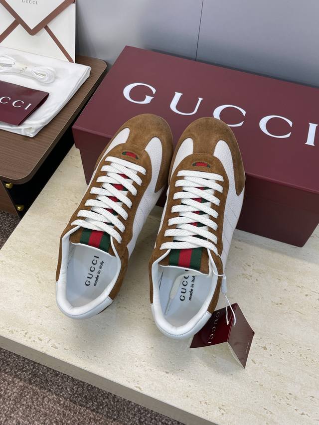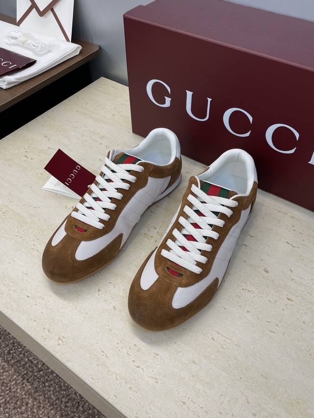 Factory direct price. Gucci 2025 Fall/Winter Shift Couple New Lace-up Casual Sneakers, G-brand logo color blocking, flat round toe, retro distressed finish, Gamba Osaka skateboard shoes, top-tier version on the market. Material: Imported calfskin upper, imported suede, imported environmentally friendly breathable monogram fabric + water-dyed cowhide lining + original molded two-tone TPU outsole. Size: Women's sizes 34-41 (34.41 custom orders are non-refundable). Men's sizes 39-46 (45.46 custom orders are non-refundable).