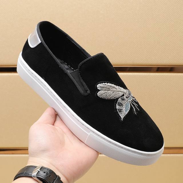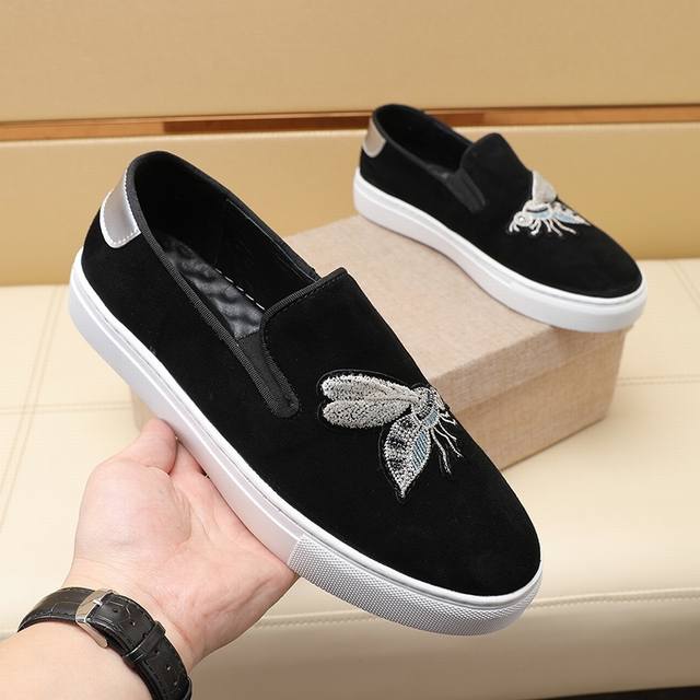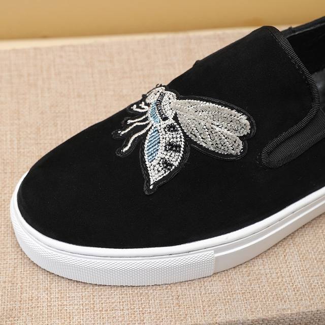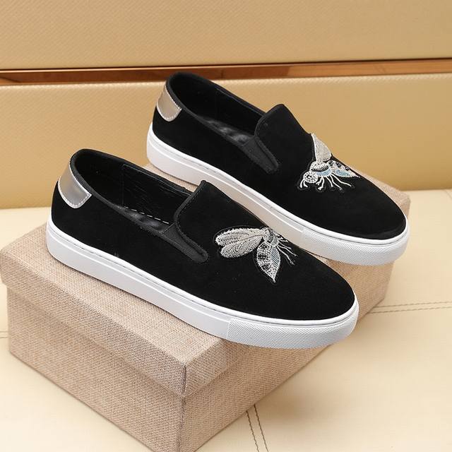 Factory direct price new Gucci slip-on loafers, Gucci low-top trendy men's shoes. The upper is made of imported Italian suede with embroidered leather, full pigskin lining, and original rubber non-slip outsole! High-profile and stylish, versatile and fashionable. Large stock available, guaranteed to sell! Sizes 38-44. (DDD)