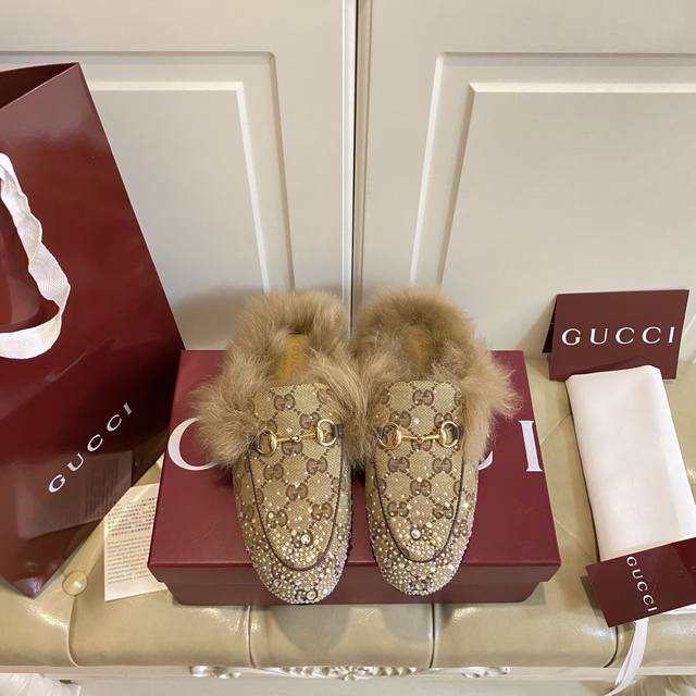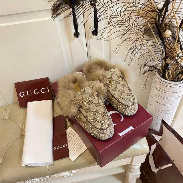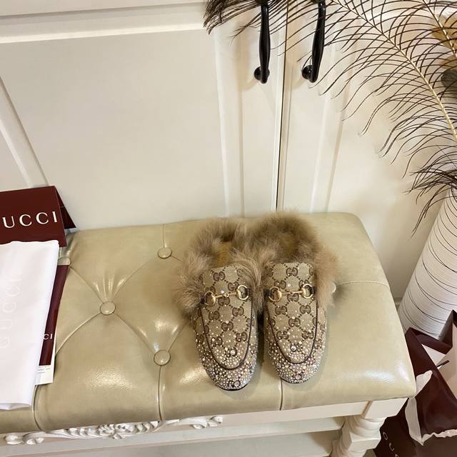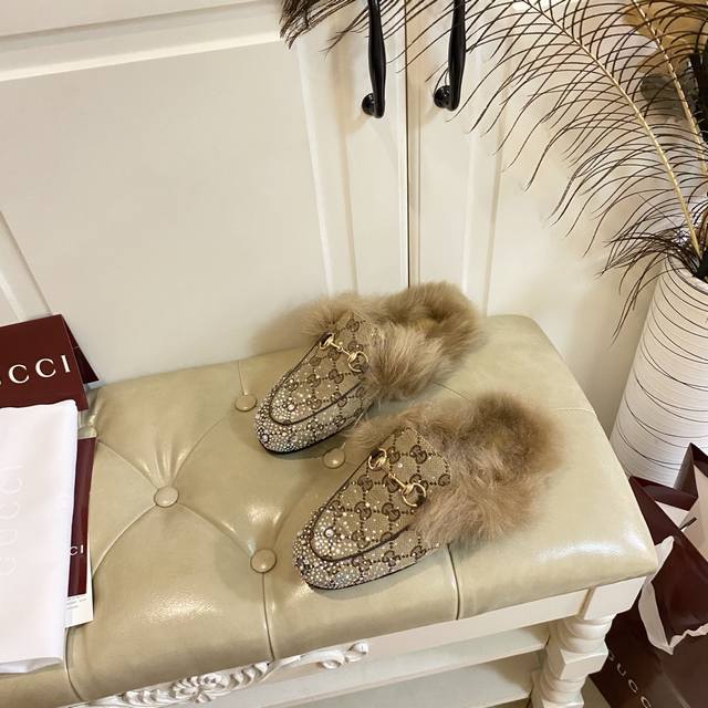 Factory direct price, PP suede, rhinestone finish, high-end Gucci new style, cow suede rhinestone fabric, wool lining, genuine leather outsole, sizes 35-40, size 41 custom-made, no returns or exchanges.