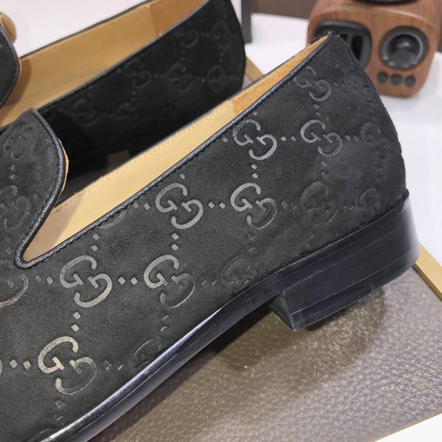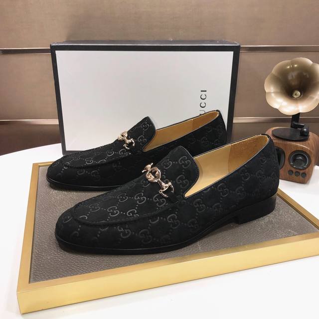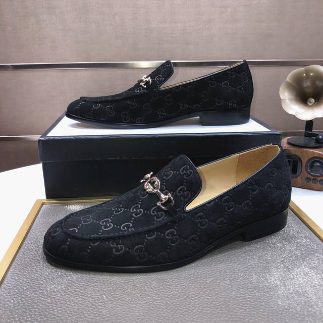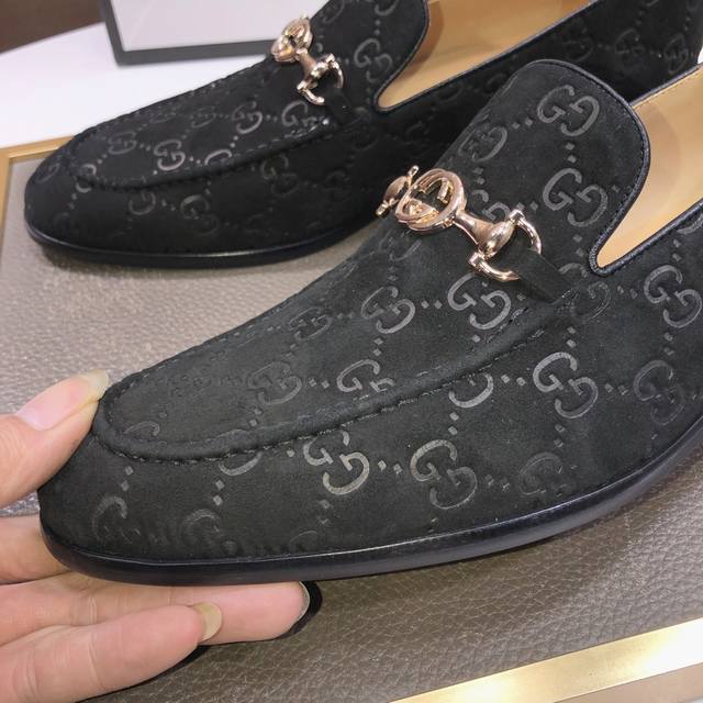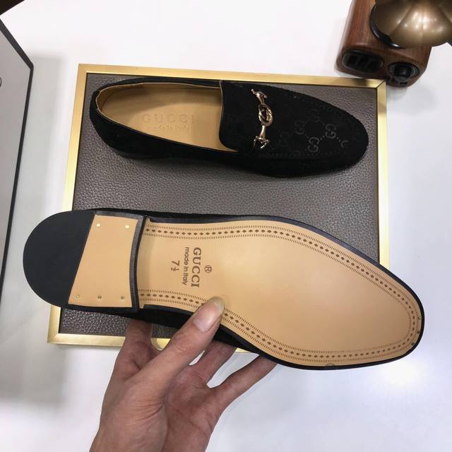 Factory direct wholesale of Gucci, Italy's top luxury men's shoe giant. New arrivals with full cowhide lining. Authentic European style, pleasing to the eye. To ensure durability and prevent deformation, traditional methods are followed, yet innovation is still present. Original sheepskin is used, smooth, natural, and exceptionally shiny. Made with imported cowhide, the first choice for the wealthy. Sizes 38-45. 45 custom sizes available.