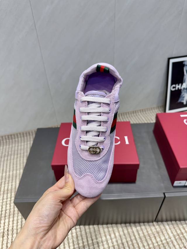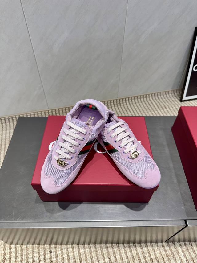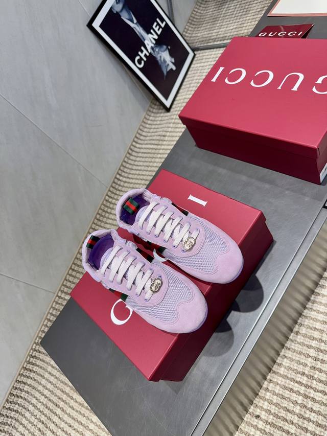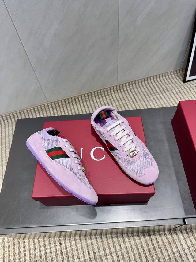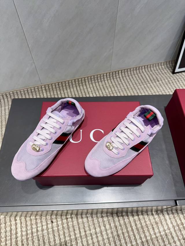 Gucci's Latest Mesh Color-Blocked Casual Shoes, Gg Gucci Series Casual Loafers Casual Runway Style Zp Development Pure Original Version Metal Double G Crystal Cylindrical Label Gucci Original Texture Webbing Upper Frizzed Cowhide Stitching with Breathable Mesh Fabric