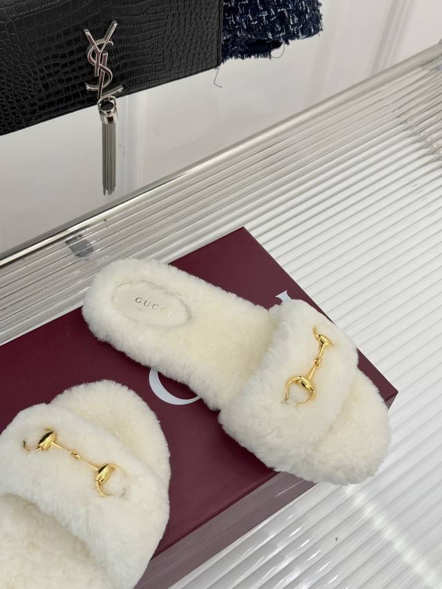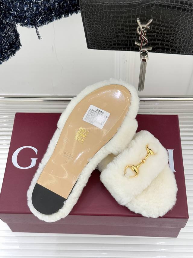 Factory Price DDD Gucci 25Wf Autumn/Winter Horsebit Sandals DDD Strappy Flat Fleece Sandals DDD Inheriting the brand's century-old equestrian heritage DDD Light gold horsebit metal hardware adorns the upper DDD Cleanly outlines the single strap DDD A vivid interpretation of Gucci's iconic symbol DDD It also hides a retro and elegant style DDD Selected fine and rich wool material DDD Through multiple processes of meticulous processing DDD It wraps around the ankle with warmth DDD It takes into account both breathability and warmth DDD Fear of the cold in autumn and winter DDD Every step feels like sinking into a soft cloud DDD It is not only an essential item for keeping warm in autumn and winter DDD It is also a dressing weapon to show off your taste DDD Stepping on it is a double enjoyment of quality and comfort DDD It allows laziness and luxury to blend seamlessly DDD It captures the exquisite moments of everyday outfits. DDD Size: 35-39 40 41 42 Custom DDD