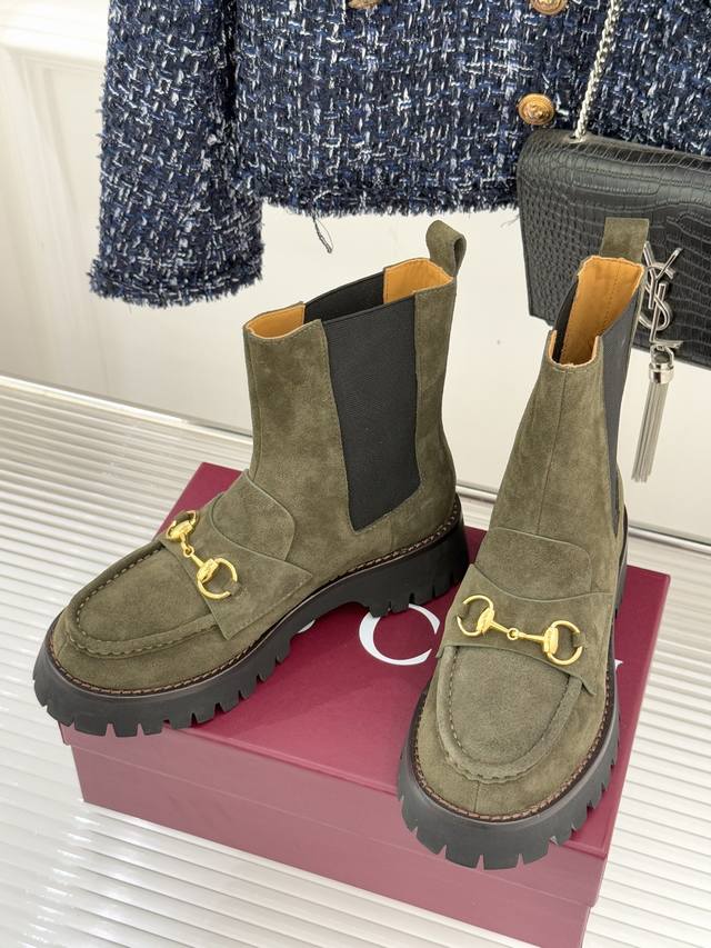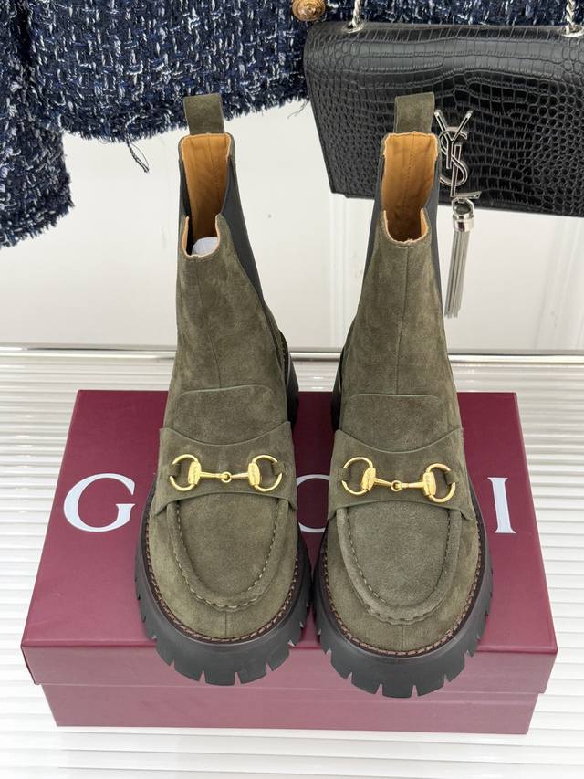 Factory Price DDD Gucci 25Wf Autumn/Winter New Arrival DDD Platform Chelsea Boots DDD The iconic horsebit buckle shines on the upper in a light gold tone DDD Like a galloping horse across the fashion plains DDD Every step exudes unique elegance and personality. DDD The fusion of loafer silhouette and Chelsea boot DDD It's a passionate embrace of retro and modern, redefining the boundaries of fashion. DDD The 3cm platform design is the secret weapon for height and a slimmer look. DDD The rubber grooved sole provides a stable grip DDD Whether strolling through the bustling city streets DDD or navigating rugged cobblestone paths DDD You'll feel as solid as a rock, full of confidence. DDD Wearing these, you'll be the master of fashion. DDD Paired with jeans, you'll be a casual and carefree street style icon DDD Paired with a dress, you'll be an elegant and modern urban woman. DDD Let you become the focus of attention and radiate unique charm in any occasion. DDD uses original custom-made denim fabric; DDD features sheepskin lining and insoles; DDD includes an original mold-made non-slip outsole; DDD Sizes: 35-39, 40, 41, 42 (custom-made).