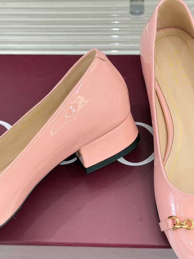 Injecting a lively atmosphere into the shoes. The 5cm chunky heel strikes a perfect balance between comfort and elegance, effortlessly projecting a sophisticated professional image for commuting to the office while also complementing the romantic atmosphere of a casual date. Its rounded, square toe design accommodates various foot shapes, providing a comfortable and unrestricted walking experience, allowing for graceful posture even after extended wear. The upper is made of original custom patent leather, the toe lining is sheepskin, and the outsole is made of imported Italian genuine leather. Sizes: 35-39, 40, 41, 42 (custom sizes available).