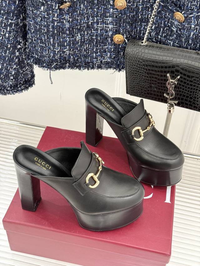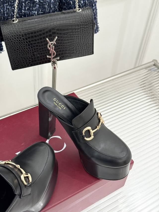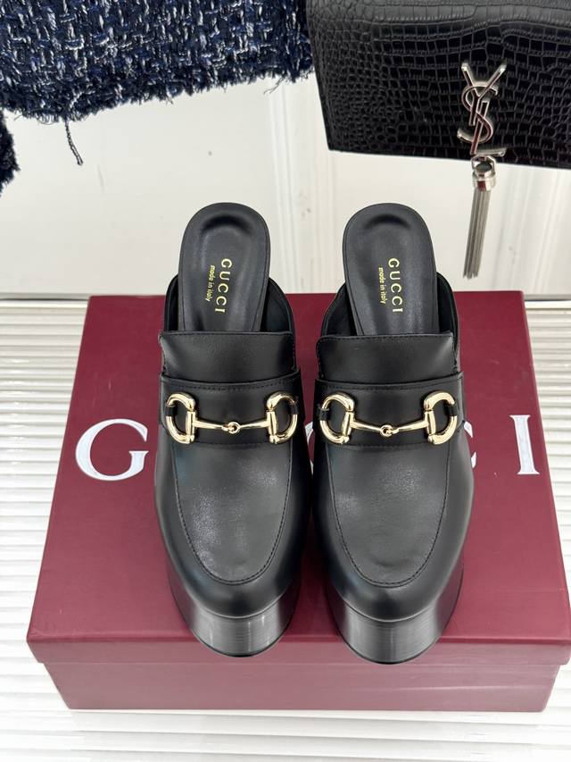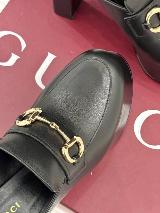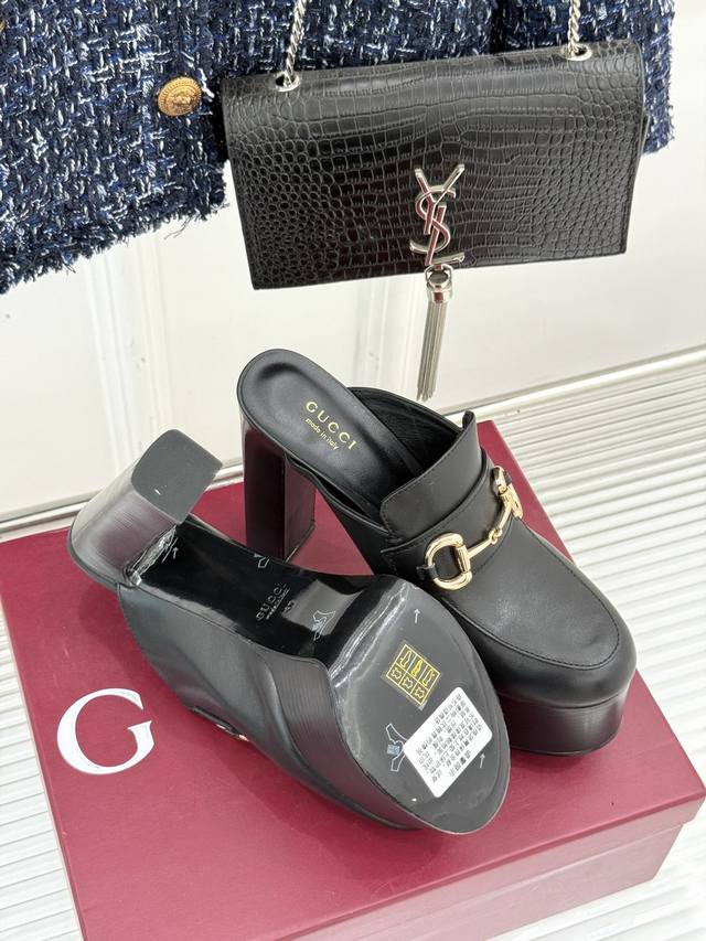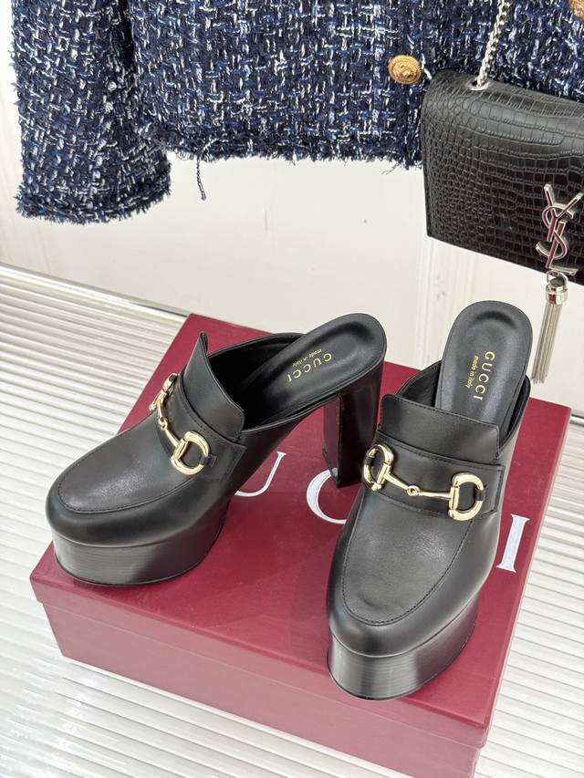 Factory Price DDD Gucci 25Wf New Platform Horsebit High-Heeled Mules DDD Inheriting the legendary mark of the brand's equestrian origins DDD The iconic horsebit shines on the upper in a light gold tone DDD Like a medal of time, telling the story of Gucci's century-old style. DDD The high heel paired with a thick platform not only gives you an enviable height DDD But also cleverly balances the pressure of walking DDD Allowing you to maintain a steady pace while swaying gracefully. DDD The exquisite craftsmanship of Italian artisans is incorporated into every detail DDD From the delicate stitching to the smooth leather edges, it exudes a luxurious texture. DDD Whether paired with a simple little black dress or a smart suit trousers DDD It can instantly elevate the overall style DDD Make you the focus of attention. DDD Wearing it, you are the protagonist on the fashion stage DDD Every step exudes confidence and charm. DDD uses original custom-made lambskin upper. The inner lining and insole are also made of lambskin. Heel height: 13cm; platform: 4.5cm. Italian imported genuine leather outsole. Sizes: 35-39, 40, 41, 42 (custom sizes available).