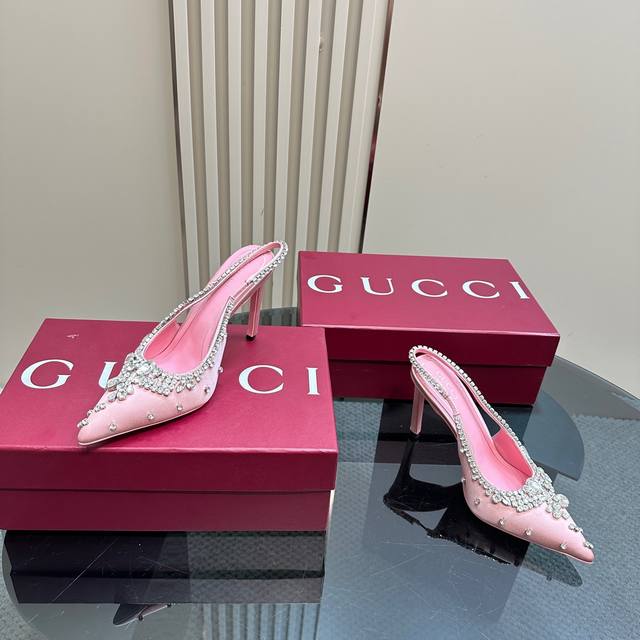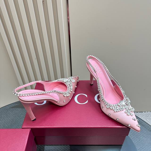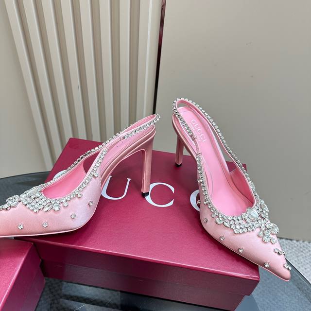 Factory price Gucci 26S Spring/Summer New Arrival Rhinestone Candy Color Backless Sandals with High Heels Ddd Gucci always impresses when it comes to showcasing a high-end feel Ddd The style looks quite simple Ddd But when you put them on, they inexplicably become very sophisticated and sexy Ddd You can easily match them with various styles Ddd The upper is made of imported silk fabric with rhinestone buckles Ddd The lining is made of imported sheepskin Ddd The sole is made of Italian imported genuine leather Ddd Heel height: 10.5Cm Ddd Size: 35-39 40 41 42 Customized Ddd