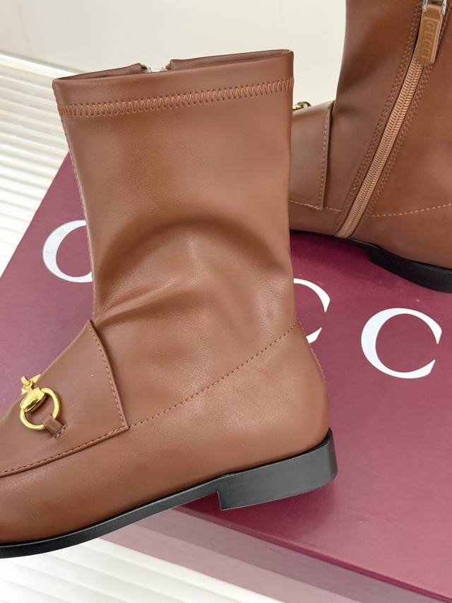 Factory Price DDD Gucci Classic Double G Horsebit Retro Loafers DDD Stretch Boots Ankle Boots DDD When a century of equestrian heritage meets modern fashion philosophy DDD This stretch boot possesses a timeless charm DDD The iconic horsebit, sculpted in a light gold tone DDD is both an elegant footnote to the brand's origins DDD and injects understated luxury into the shoe DDD echoing the classic and powerful nature of equestrian sports DDD The upper is made of supple and elastic leather DDD It flexibly conforms to the curves of the foot DDD The elastic trim at the boot opening eliminates any sense of restriction DDD Making putting on and taking off and walking a free and enjoyable experience DDD Continuing the retro silhouette of loafers DDD Paired with a sleek ankle boot shape DDD The leather sole carries the solid texture of Italian craftsmanship DDD The collision of elastic material and the retro essence of the horsebit DDD Easily supports both the competence of commuting and the gentleness of dating DDD Becoming a versatile and high-quality shoe in your autumn and winter wardrobe. DDD uses original cowhide leather with elastic material for the upper. The inner lining and toe box are made of sheepskin . It features an Italian imported genuine leather outsole. Sizes: 35-39, 40, 41, 42 (custom sizes available).