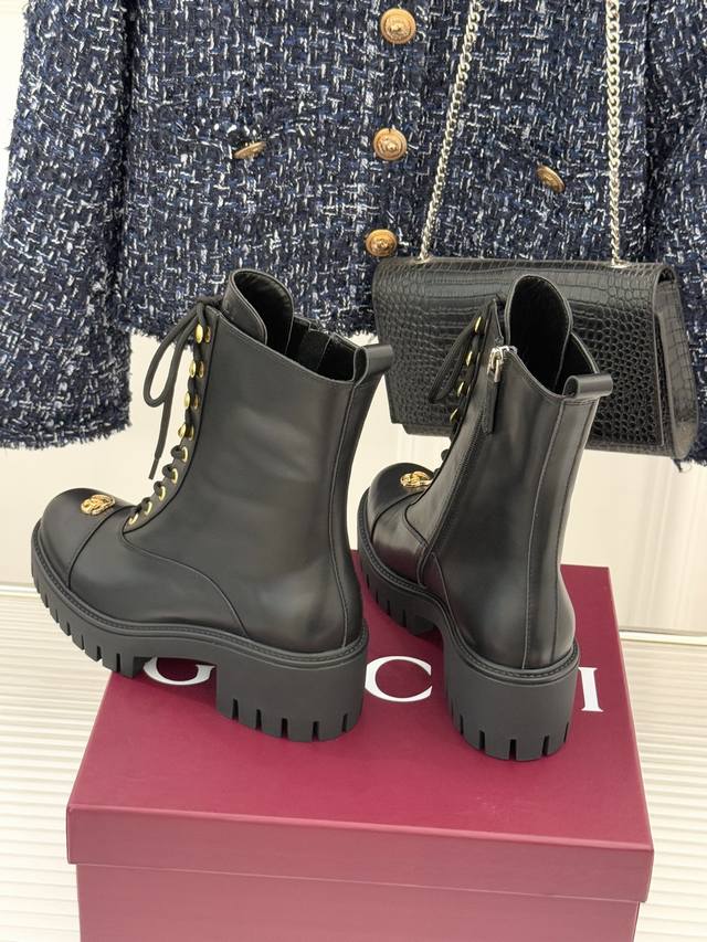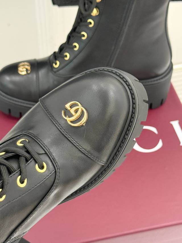 Factory Price DDD Gucci Classic Double G Metallic Logo Platform Boots DDD Martin Boots DDD When classic boot style meets brand DNA DDD These boots inject retro and sharp elements into winter outfits. DDD The eye-catching double G metallic logo on the toe is particularly striking DDD This iconic element, originating from the brand's founding, DDD is reinterpreted with a modern metallic texture DDD Showcasing brand recognition with every move DDD The upgraded platform design hides clever design DDD It also naturally lengthens the leg line DDD Paired with a durable rubber grooved sole DDD It combines comfort and stability while walking. DDD Whether paired with jeans for a casual street style DDD or mixed with a long skirt to balance elegance and rebellion DDD These boots can brighten up your look with iconic details DDD From city commuting to winter strolls DDD Let the double G mark become your style badge DDD Find the perfect balance between warmth and style DDD features original custom-made calfskin upper, sheepskin lining and insoles, and an original molded custom-made non-slip outsole. Sizes: 35-39, 40-41 (custom-made).