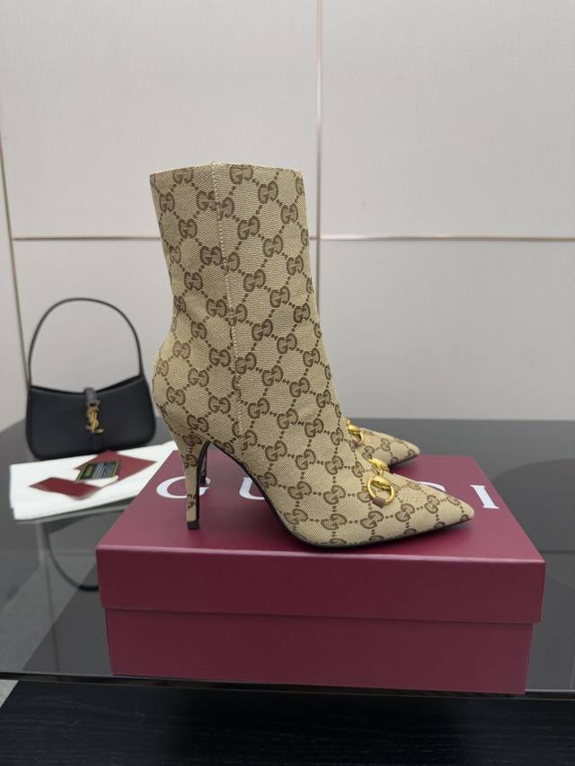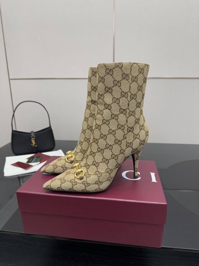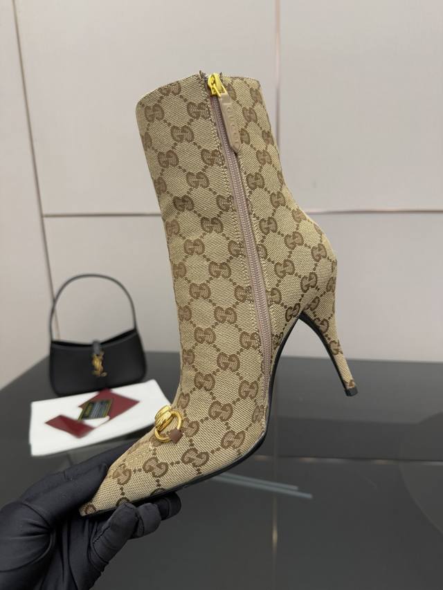 Factory Price p Fabric Boots DDD Gucci Classic Bestselling Autumn/Winter Pointed Toe Chain High-Heeled Ankle Boots! DDD This year's must-have boots! The overall shape is smooth and elegant, exquisite and versatile yet stylish