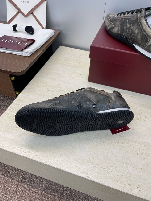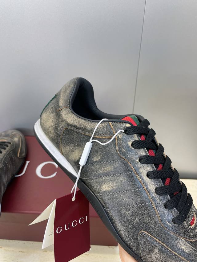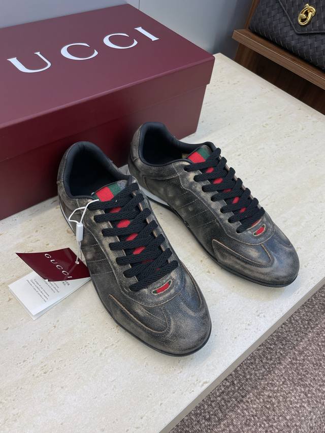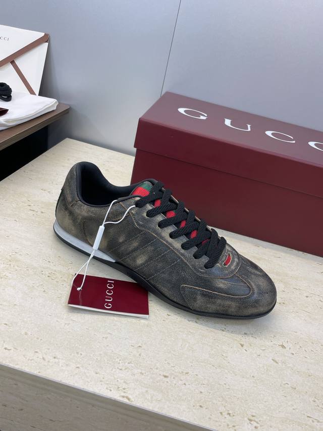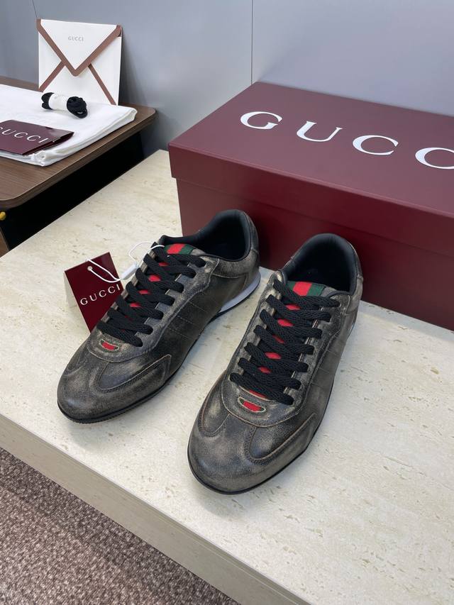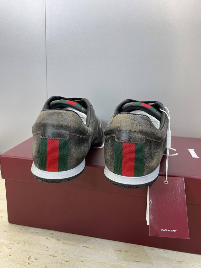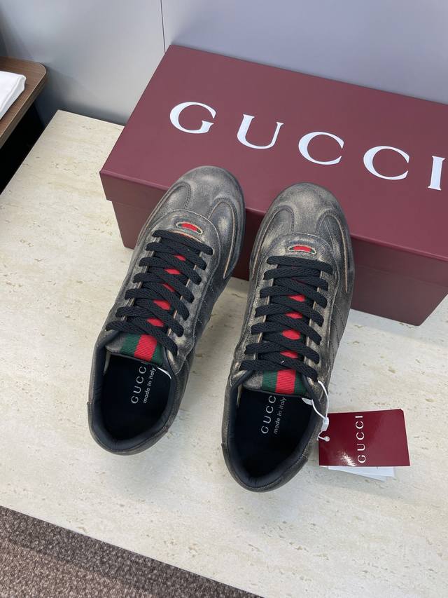 Gucci 2025 Fall/Winter Collection Shift Couple New Lace-up Casual Sports Shoes G Brand Logo Color Block Flat Round Toe Retro Distressed Color Gauntlet Training Skateboard Shoes Top Version on the Market