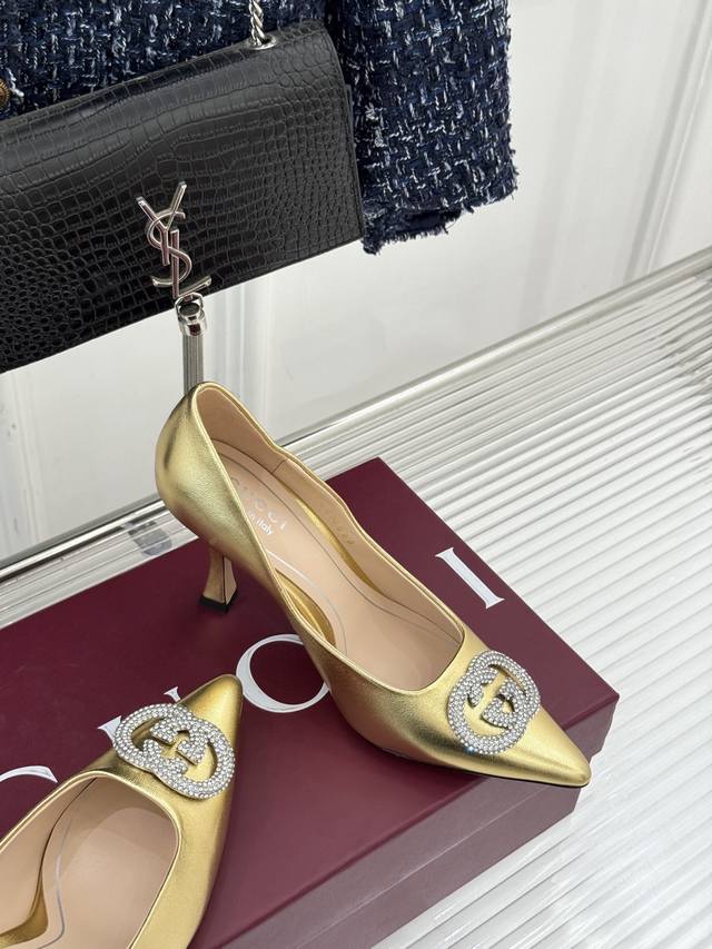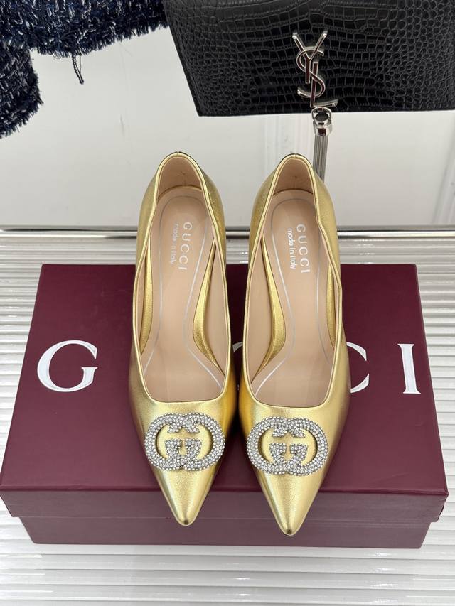 Factory Price p Ddd Gucci 26Wf Early Spring Rhinestone Pointed Toe High Heels Ddd Tracing the Florentine Renaissance Heritage Ddd These high heels "return to the roots" Ddd blend the brand's century-old DNA and elegant aesthetics into the footwear Ddd The rhinestone shimmer hides a sense of quality and sophistication Ddd perfectly interpreting Italian "effortless elegance". Ddd The double G logo is particularly eye-catching under the rhinestone inlay Ddd adding a touch of lively brilliance Ddd showcasing Gucci's unique brand style Ddd Whether paired with a simple dress Ddd or a smart suit Ddd, it can instantly enhance your sense of fashion and sophistication Ddd making you the focus of attention. Ddd The material is made of original custom leather Ddd The inner lining is made of sheepskin Ddd Heel height: 8.5Cm Ddd Italian imported genuine leather outsole Ddd Size: 35-39 40 41 42 Custom DDDs