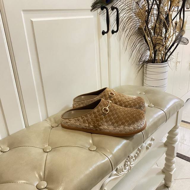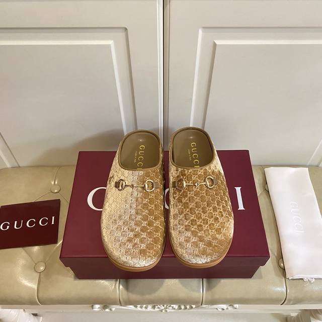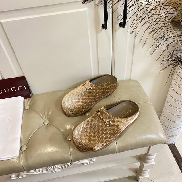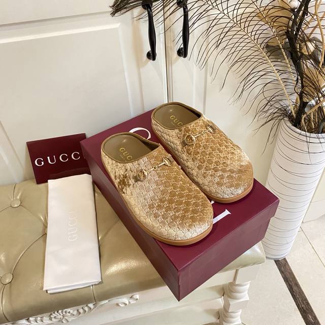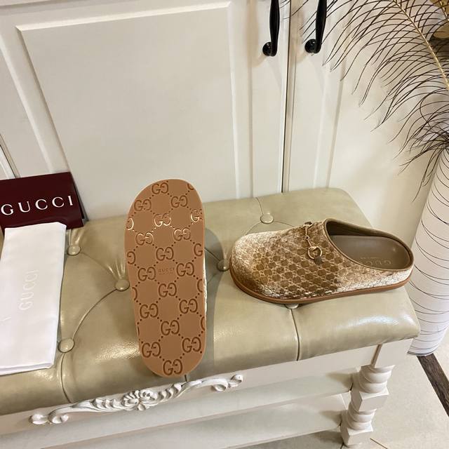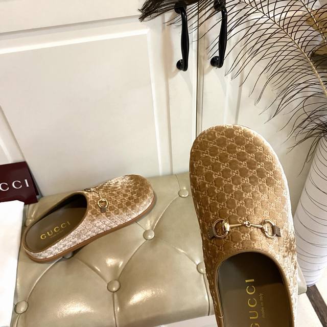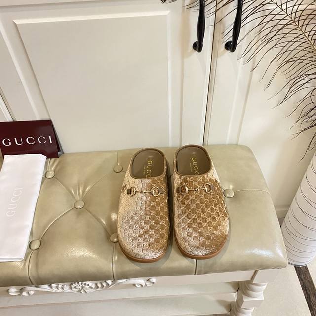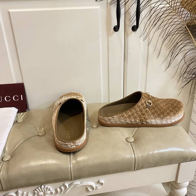 Factory Price P, Gucci New Round Toe Mule Slippers, Velvet Upper, Lambskin Lining, Rubber Sole, Sizes 36-42