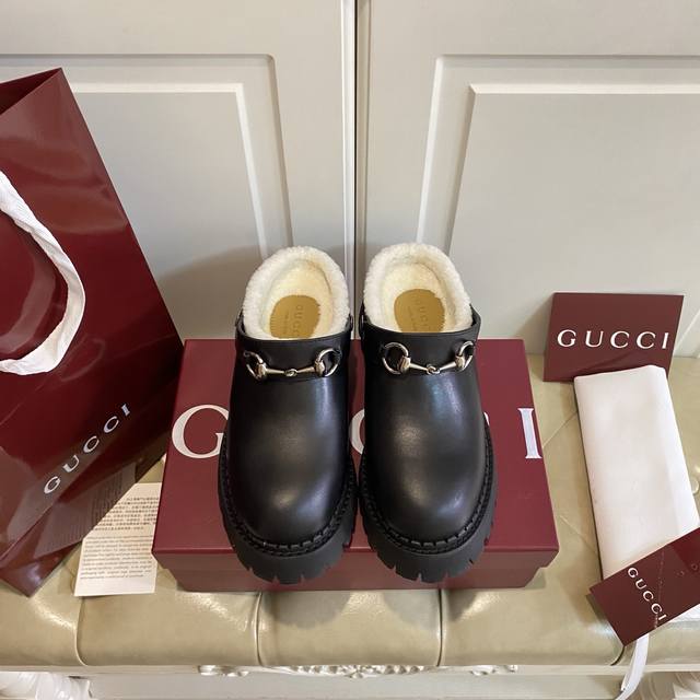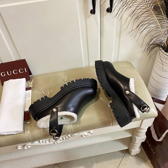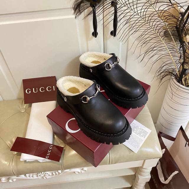 Factory Price P, High-Quality Gucci New Style, Two Ways to Wear, Cowhide Suede Upper, Wool Lining, 5cm Thick Sole, Rubber Sole, Sizes 35-40, Size 41 Made to Order, No Returns or Exchanges