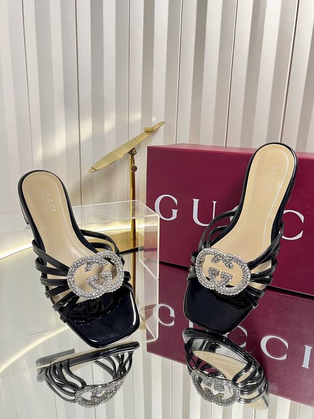 Factory Price pp 2670 Early Spring Gucci New Style Crystal Rhinestone Inlaid Interlocking Double G Buckle Slippers Wine Glass Horseshoe Heel Commuter Sandals Luxurious and Elegant High Heels DDD Upper: Imported Patent Leather Metallic Leather Ddd Insole: Full Grain High-Grain Lambskin Ddd Sole: Italian Top-Grain Genuine Leather Sole Ddd Heel Height: Flat 8.5Cm Ddd Sizes: 35-42 42 41 40 Custom Made, No Returns or Exchanges Ddd Packaging: Original Full Set of Anchor Red Packaging DDD These Gucci sandals are crafted from imported patent leather metallic leather. The shoe's lines are elegant and clean, combining versatility and exquisite style. The exquisite interlocking double G buckle inlaid with crystal rhinestones adds sparkle to the look. The classic design of the stiletto heel and pointed toe interprets a sophisticated and everyday commuting style DDD