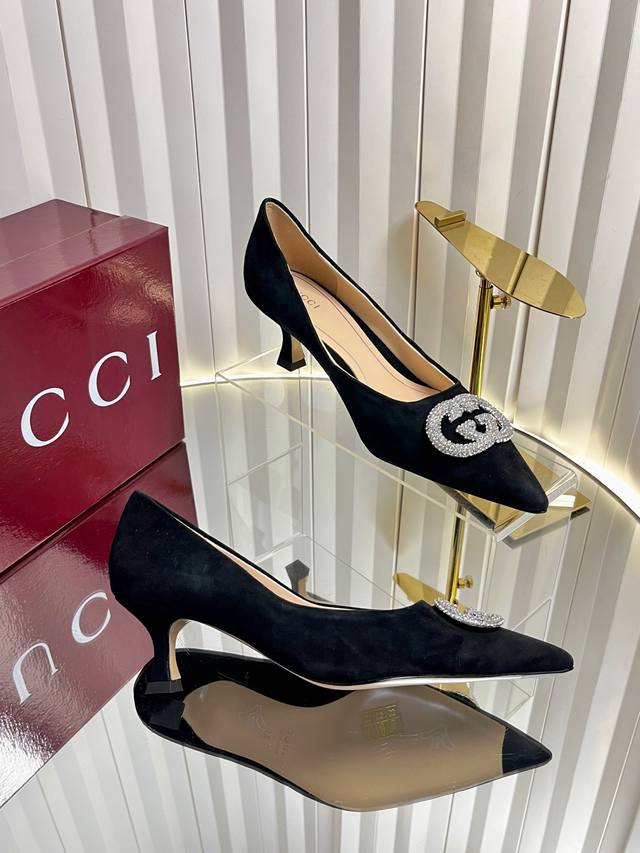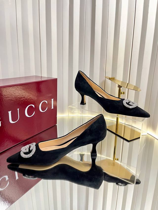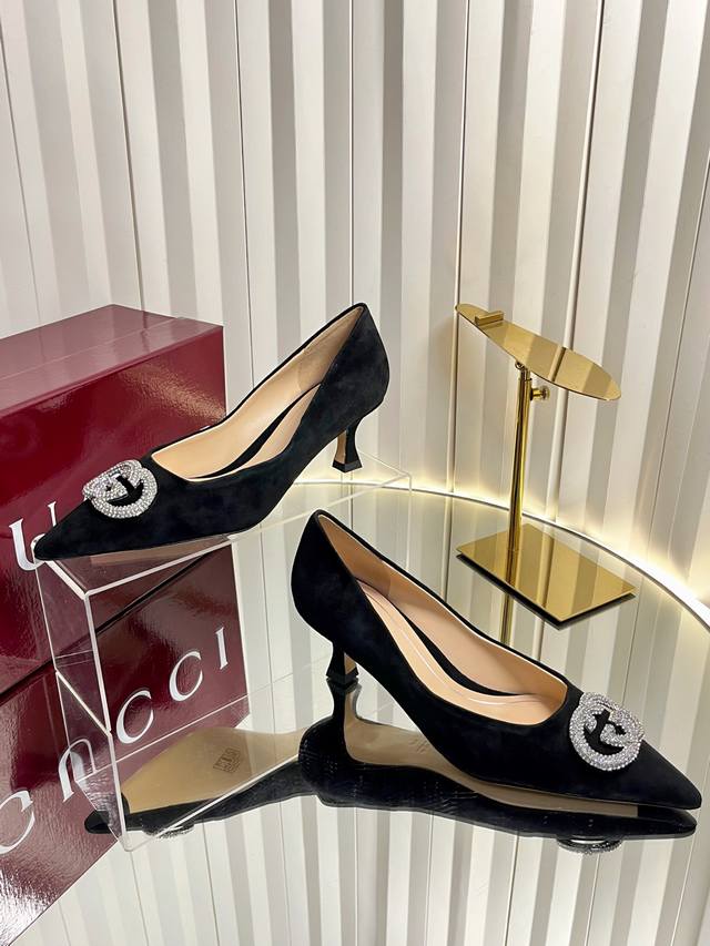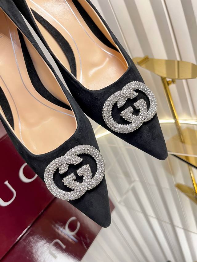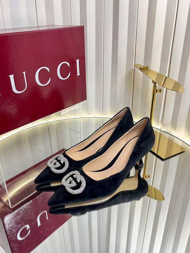 Factory Price pp 2670 Early Spring Gucci New Style Gucci Crystal Rhinestone Inlaid Interlocking Double G Buckle Low Mouth Women's Shoes Wine Glass Horseshoe Heel Commuter Shoes Luxurious and Elegant Mid-Heel High Heels DDD Upper: Imported Patent Leather Grain Leather Metallic Leather Sheepskin Deer Leather Ddd Insole: Full Grain High-Grain Lambskin Ddd Sole: Italian Top-Grain Genuine Leather Sole Ddd Heel Height: 5 cm and 8.5 cm Ddd Sizes: 35-42 42 41 40 Custom Made, No Returns or Exchanges Ddd Packaging: Original Full Set of Anchor Red Packaging DDD This Gucci low mouth shoe is crafted from imported patent leather metallic leather sheepskin deer leather. The shoe shape has elegant and clean lines, combining versatility and exquisite style. The exquisite interlocking double G buckle inlaid with crystal rhinestones adds a dazzling brilliance to the look. The classic design of the stiletto heel and pointed toe interprets a high-end and everyday commuting style DDD