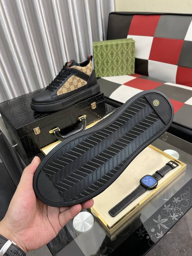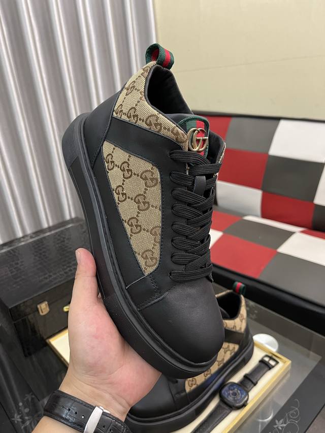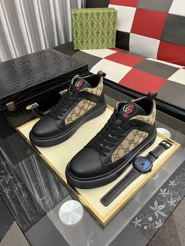 Factory Price (pp): Gucci New Men's Genuine Leather Casual Shoes, the highest quality version on the market, feel free to compare! Original leather with excellent texture, super high-end! Italian imported lambskin mesh lining, removable insole! Luxurious materials, exquisite workmanship, highly recommended! Sizes: 38-44, 4 colors available.