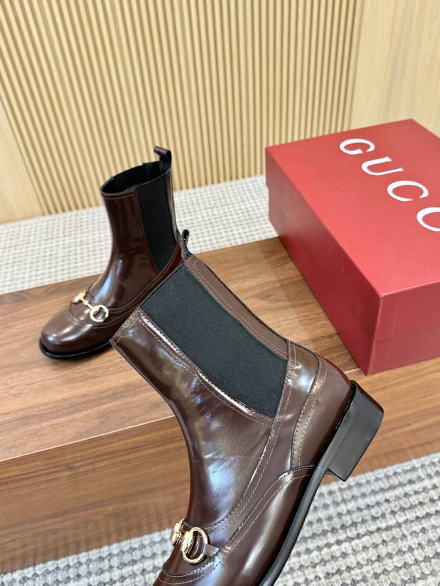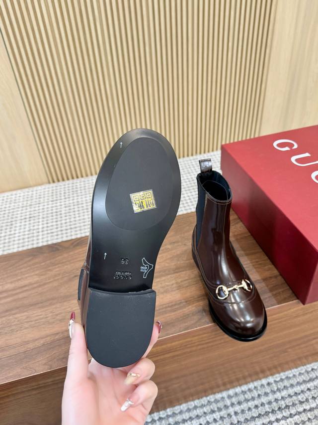 Factory Price (pp): High-quality Gucci Fall/Winter Women's Martin Boots. Original purchase and development of these ankle boots. The classic lettering is meticulously crafted. Inspired by the 1970s Gucci belt buckle design, this accessory, reinterpreted with modern aesthetics, has become one of the brand's symbols. The split-edge leather piping adds a unique charm to the entire design. Comes with exquisite boutique packaging . Material: Original custom split-edge piping. Lining: Water-dyed sheepskin lining. Outsole: Original molded TPU outsole. Heel height: 4cm. Size: 35-42, customizable to 41:42.