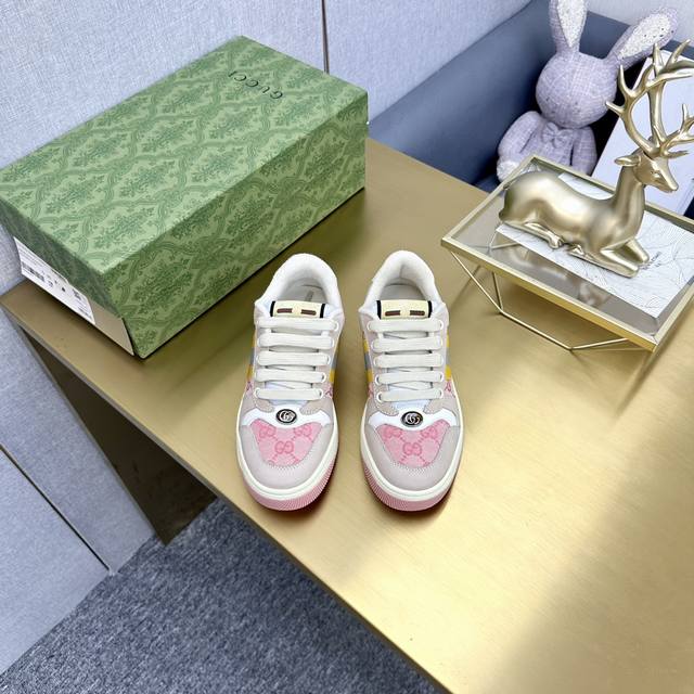 Factory price, PP men's and women's sizes, highest quality on the market. DDD Gucci newly upgraded back lining, top-quality distressed sneakers, Screener series crystal-embellished sneakers. DDD G distressed sneakers with rhinestone embellishments, blue rhinestones, classic casual couple style, retro sneakers, distressed Gucci distressed sneakers, updated simultaneously with boutiques! DDD