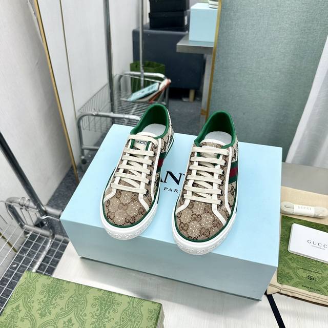 Factory Price: Women's +10. Top-tier version Gucci 1977 low-top double G canvas shoes, original purchase, 1:1 development, original last craftsmanship. Sizes: 35-45. Size 45 is custom-made and non-refundable, payment in advance. New version with full packaging.